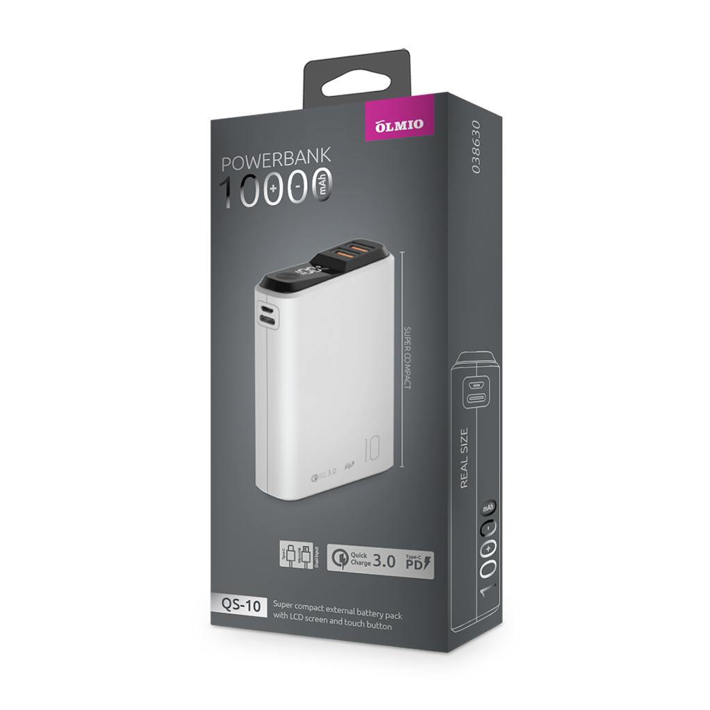 Внешний аккумулятор OLMIO QS-10 (38630) 10000mAh белый