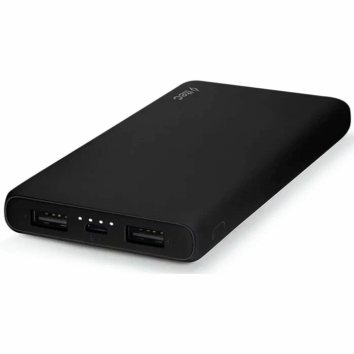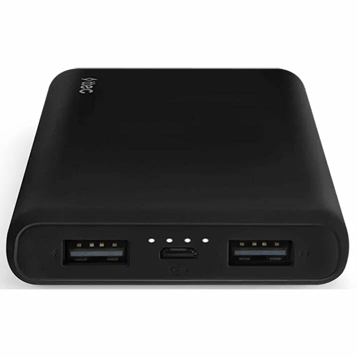 аккумулятор ёмкостью 10000 мАч, выход: 2xUSB, вход: microUSB, максимальный ток: 2 А, быстрая зарядка, индикатор заряда
