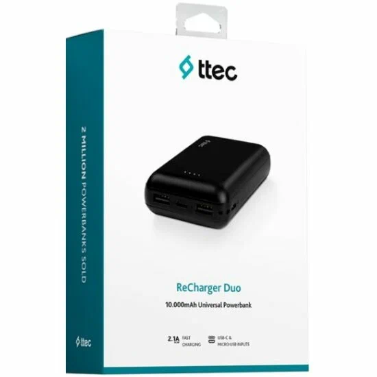 Внешний аккумулятор TTEC 2BB187S ReCharger Duo 10000 mAh Powerbank With USB-C Input/Output Black