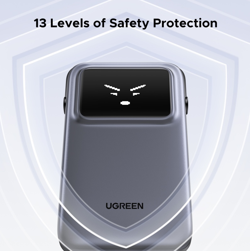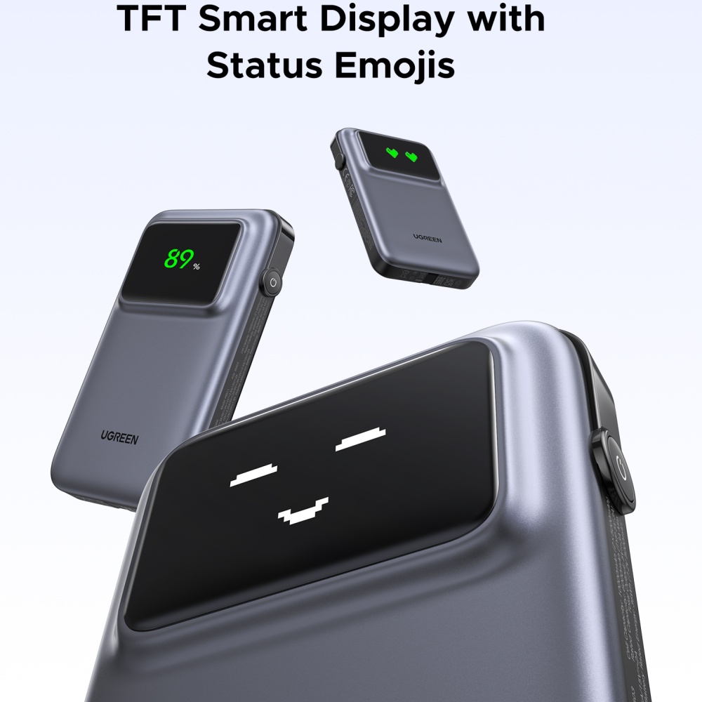 Внешний аккумулятор UGREEN PB511 (35603B) UNO 10000mAh Charging 30W Power Bank with Display&Build-in U-C Cable Gray