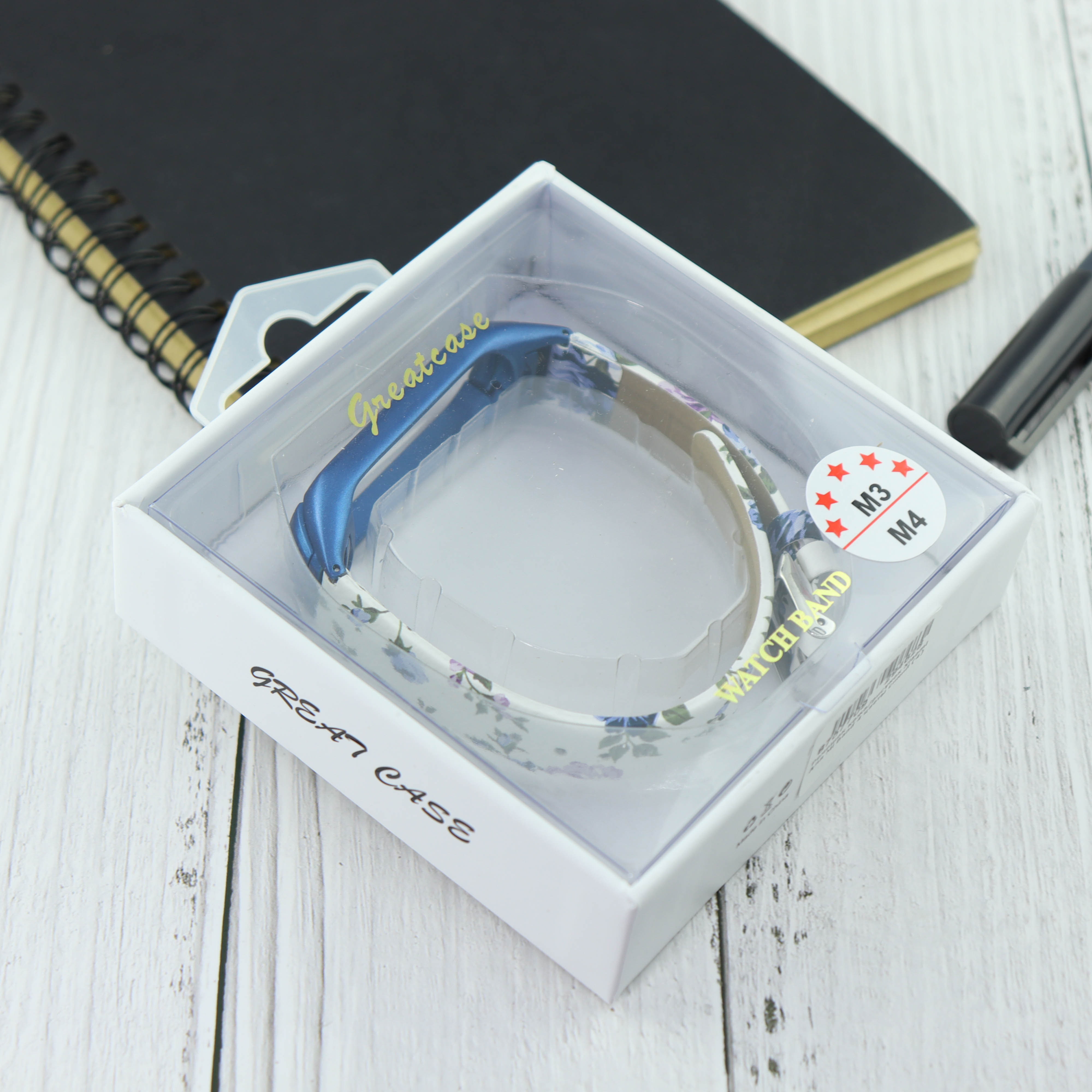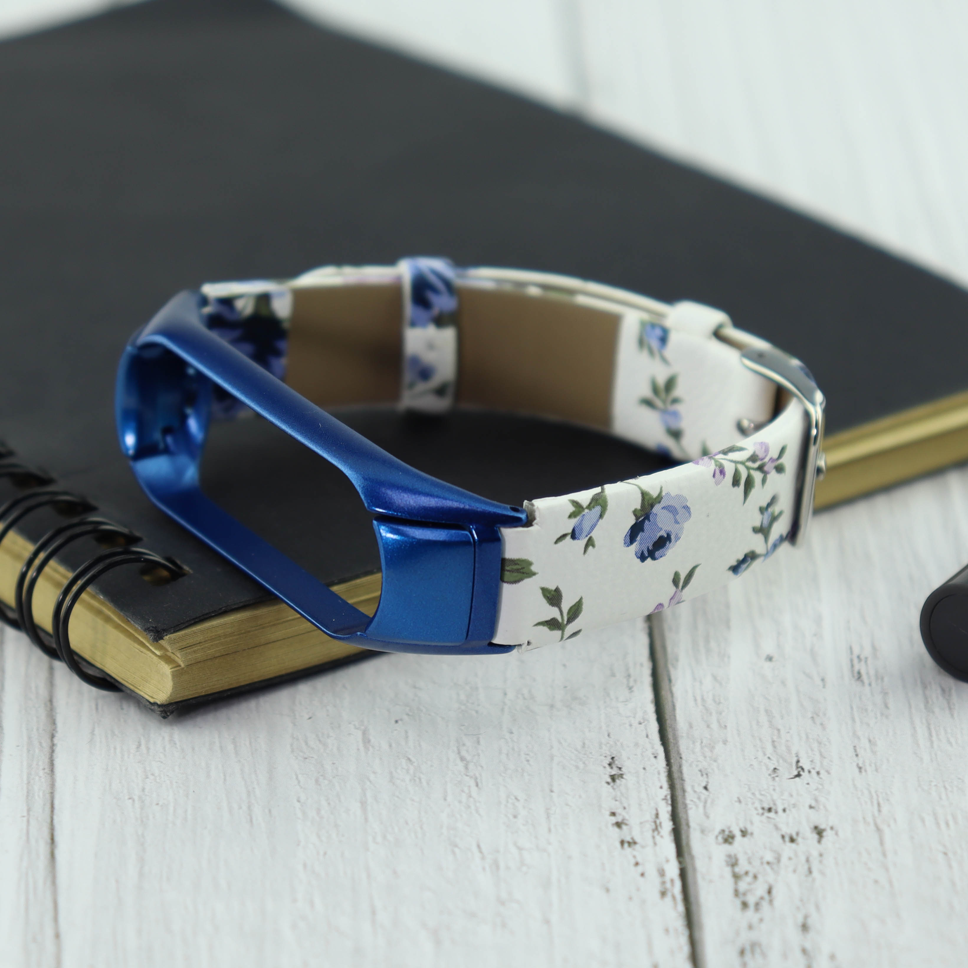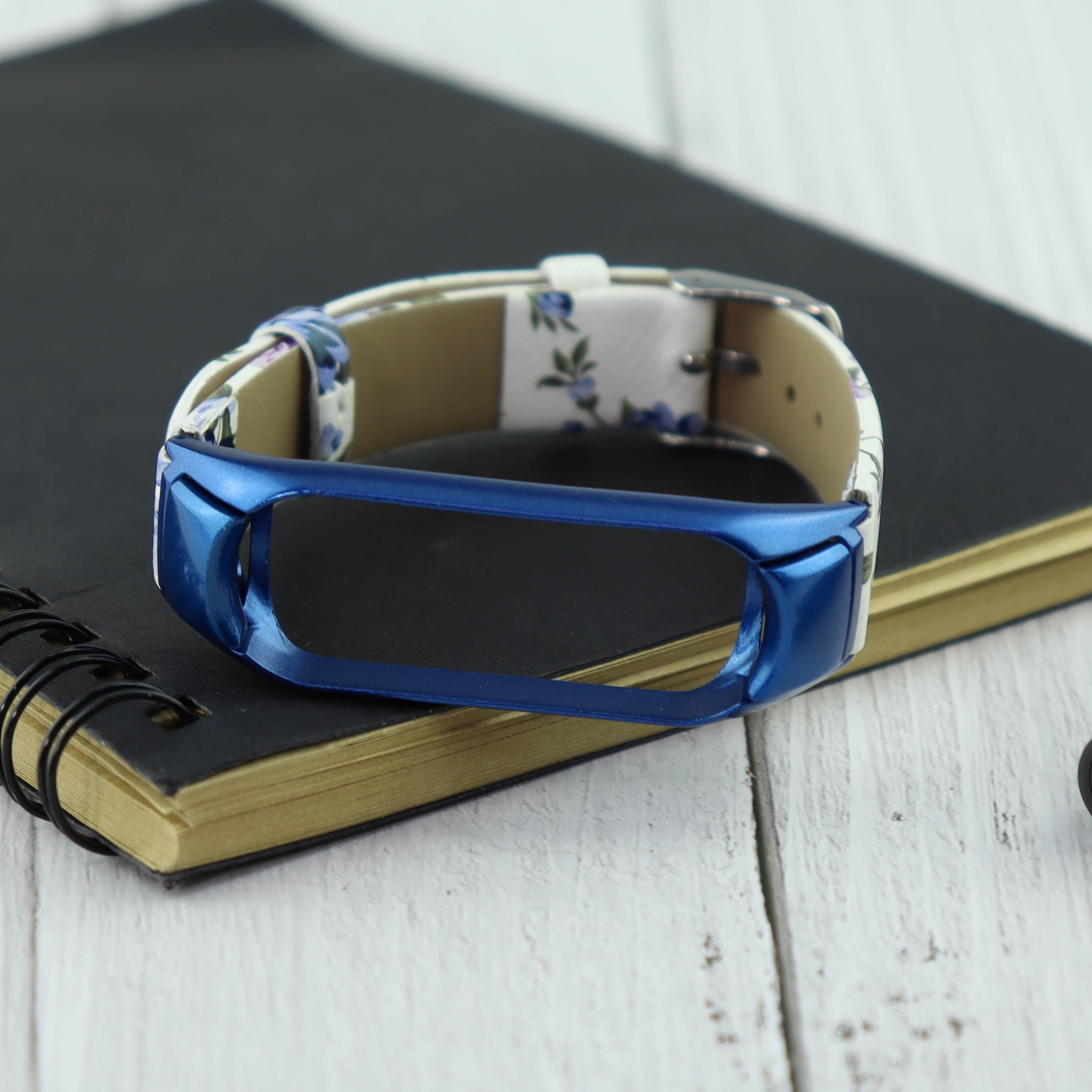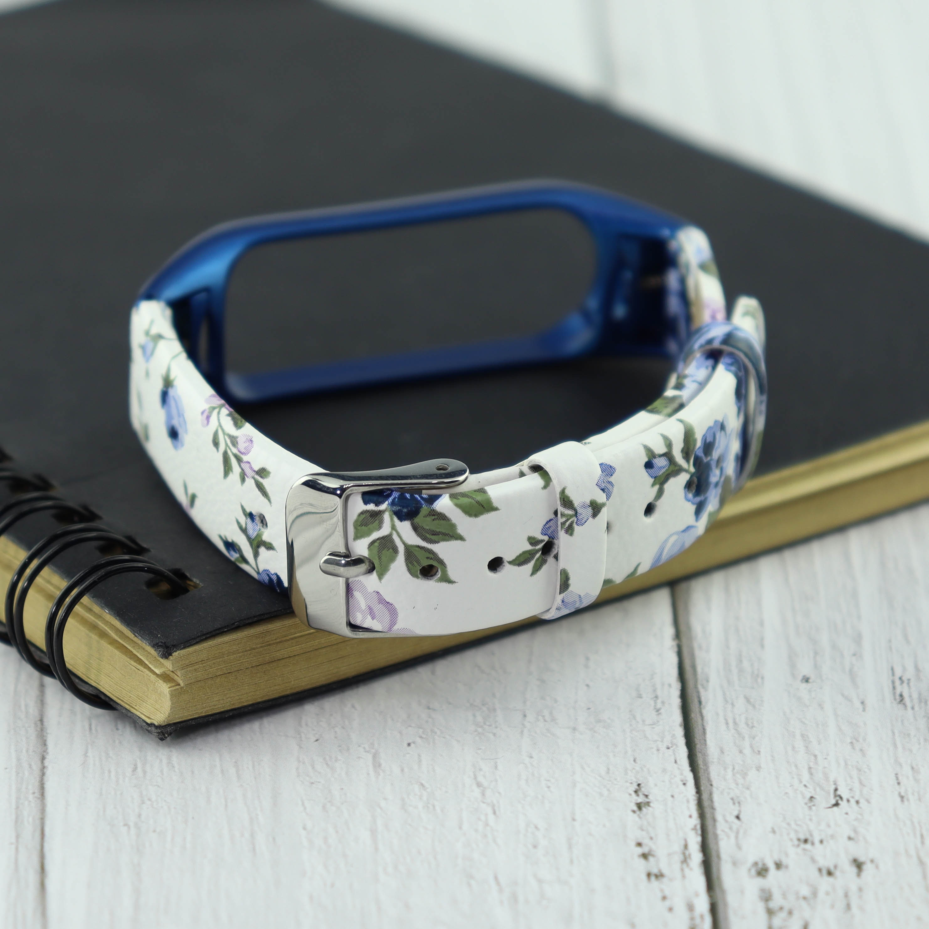 Ремешок кожа/рисунок Xiaomi для Mi Band 4 цветы синий (4)