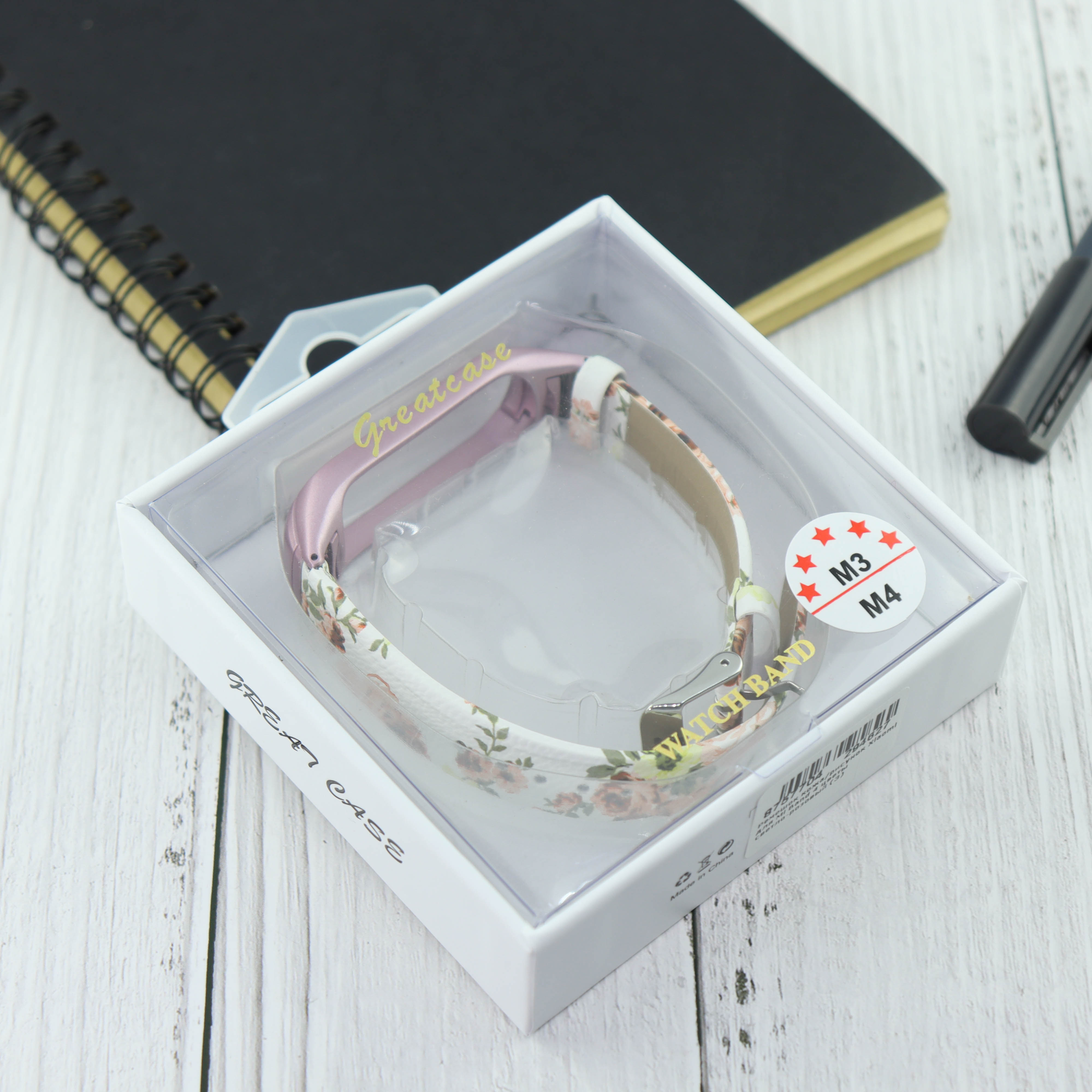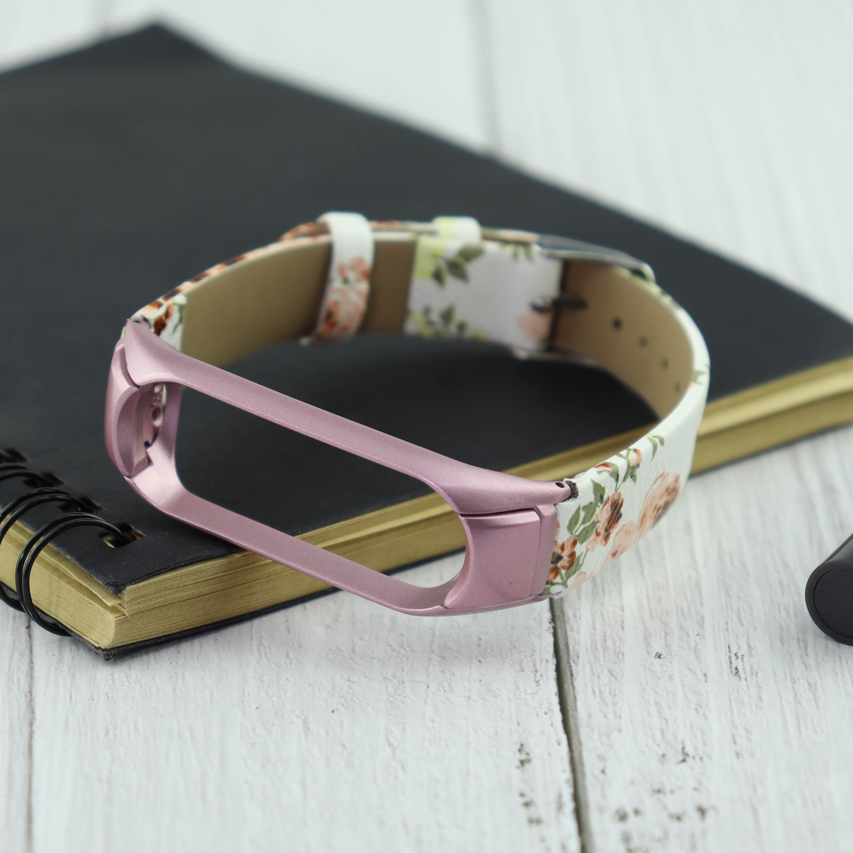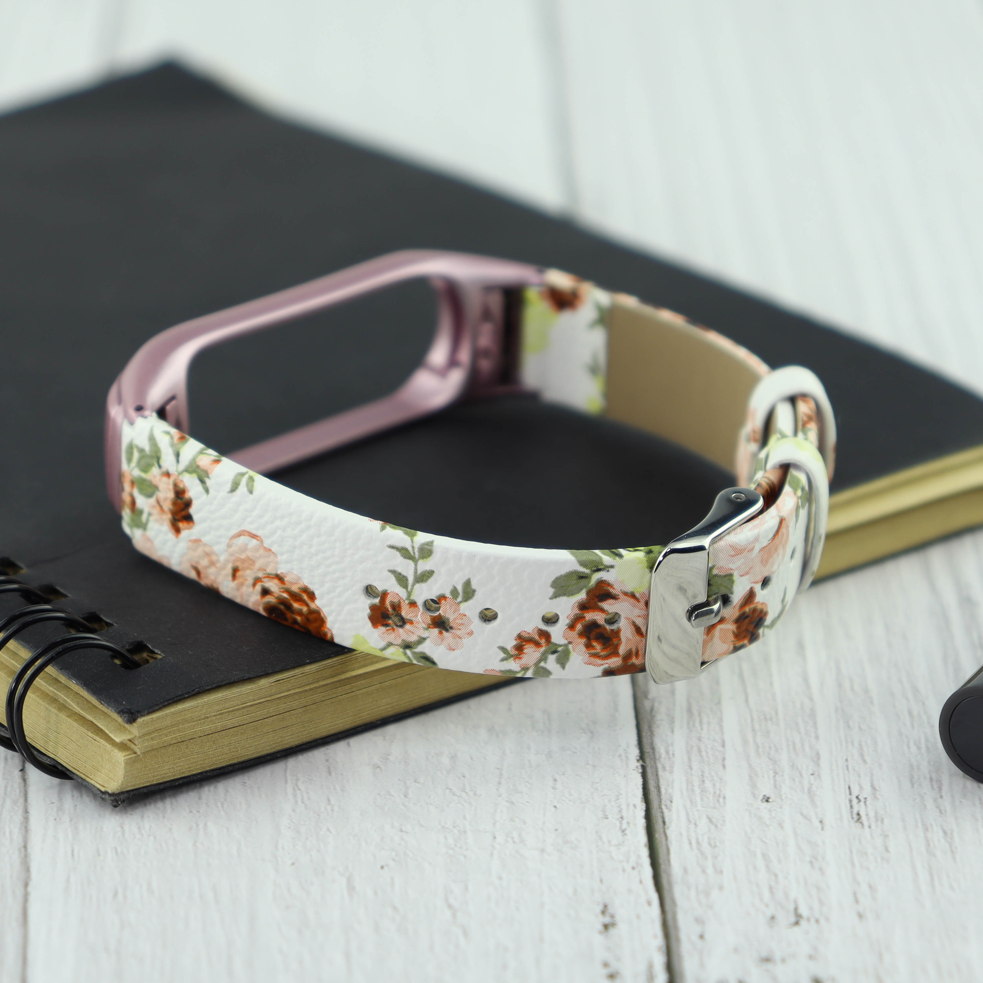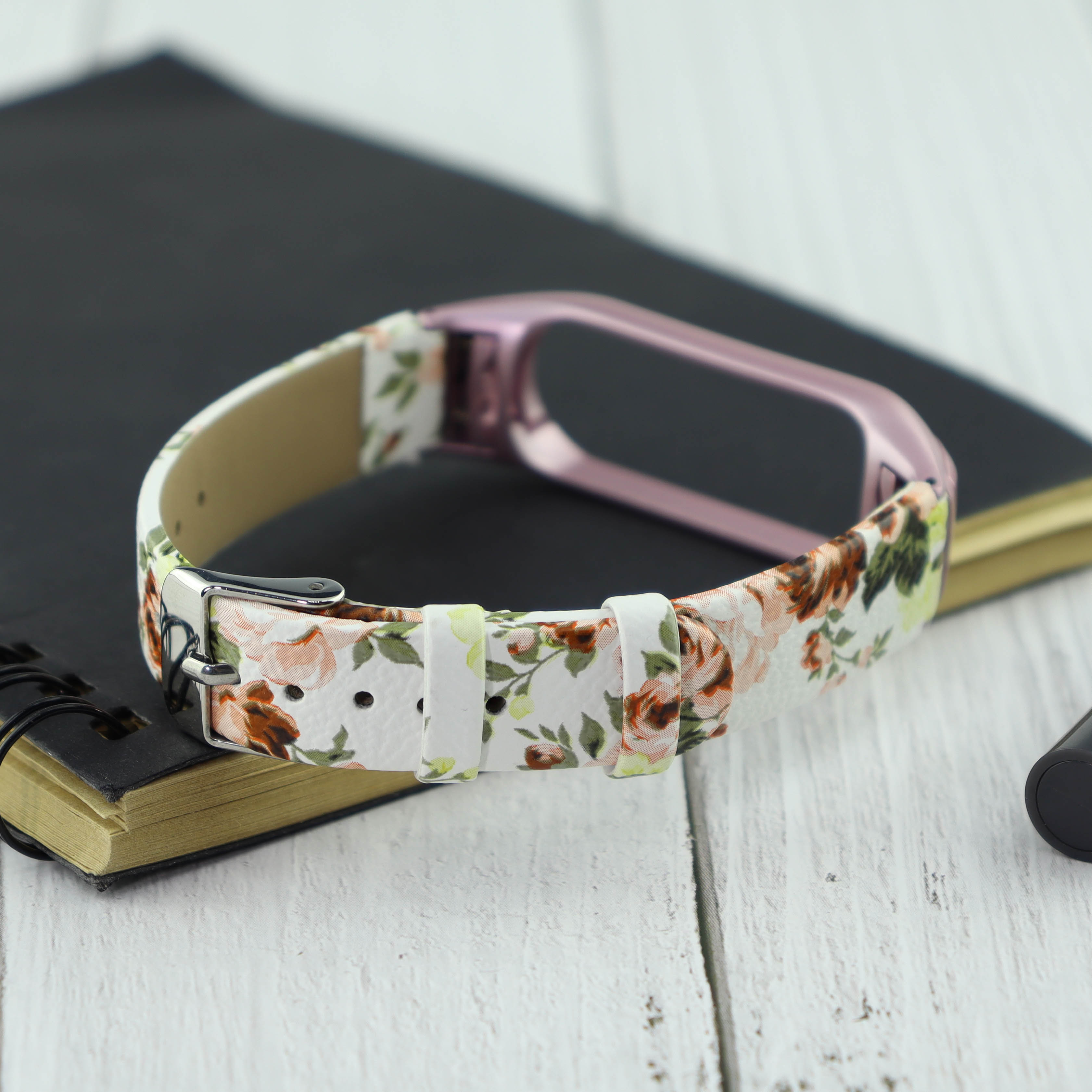 Ремешок кожа/рисунок Xiaomi для Mi Band 4 цветы светло-розовый (3)