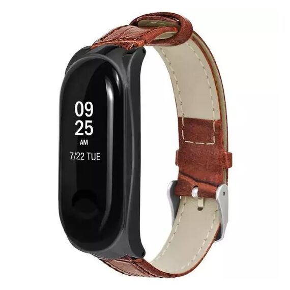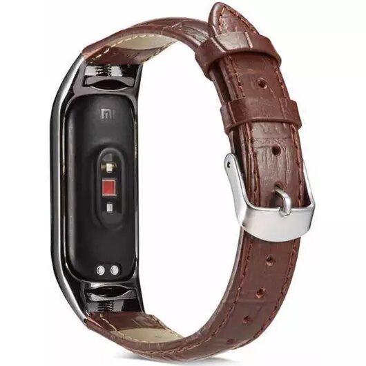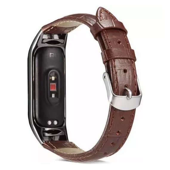 Ремешок кожаный для фитнес трекера Xiaomi Mi Band 5/Mi Band 6 коричневый