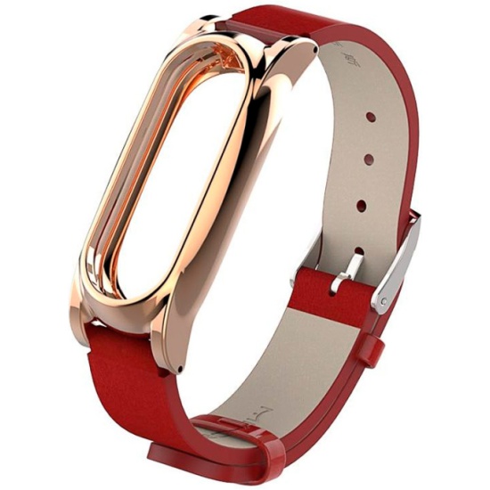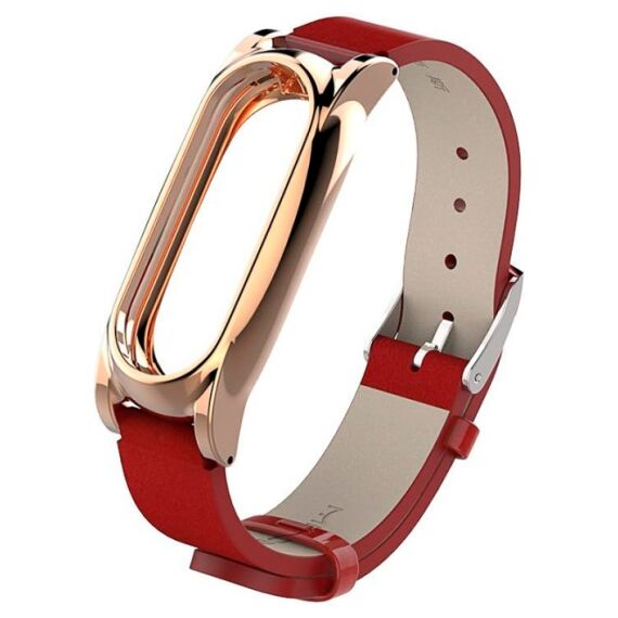 Ремешок кожаный для фитнес трекера Xiaomi Mi Band 5/Mi Band 6 красный
