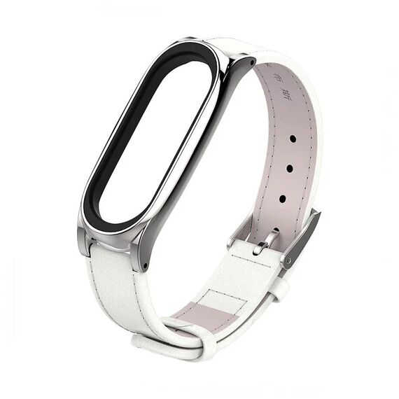 Ремешок кожаный для фитнес трекера Xiaomi Mi Band 6 белый