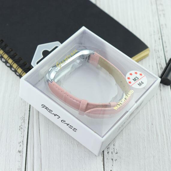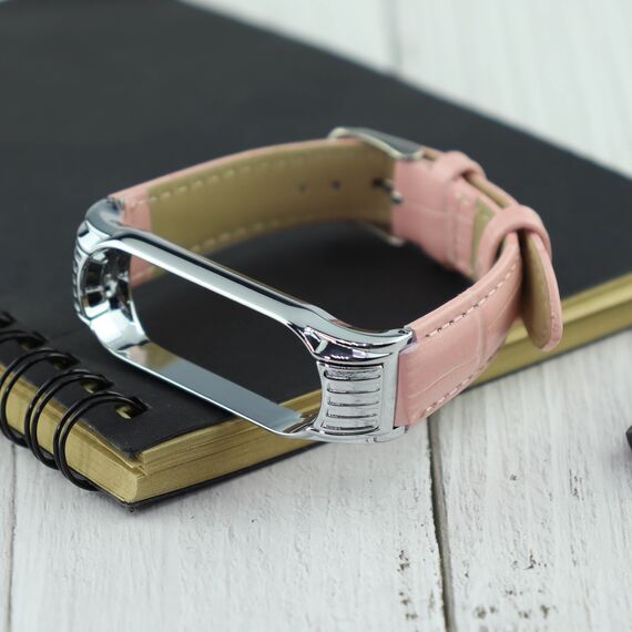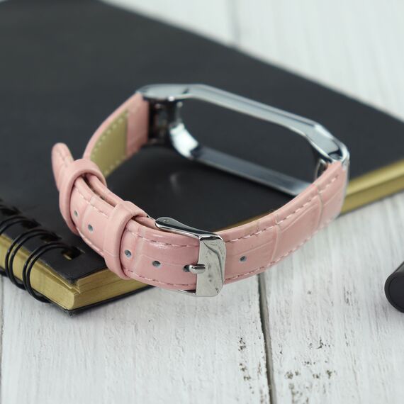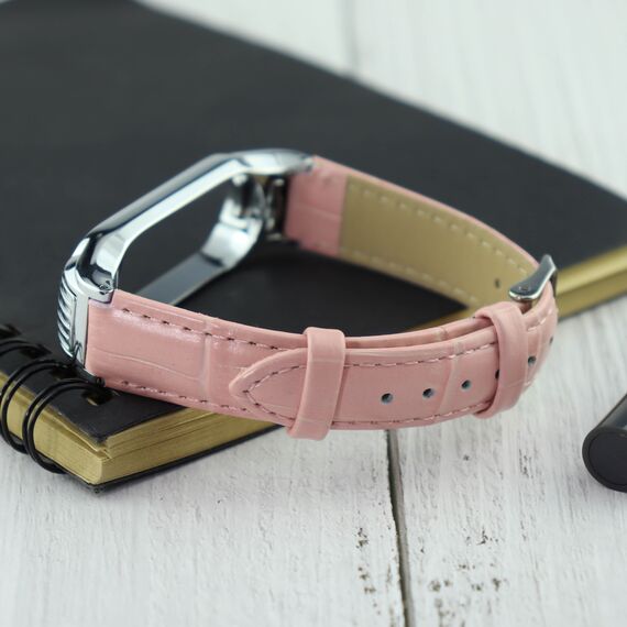 Ремешок кожаный выпуклый для Mi Band 3/4 розовый