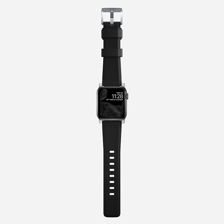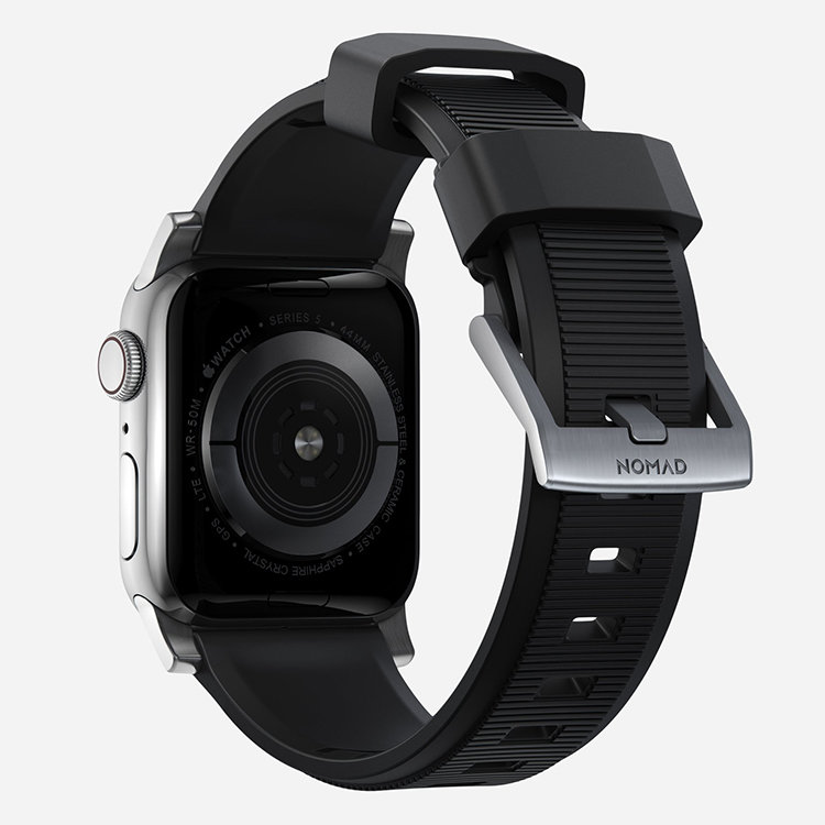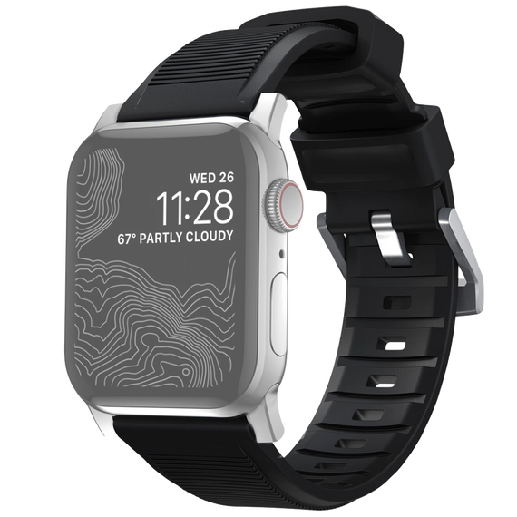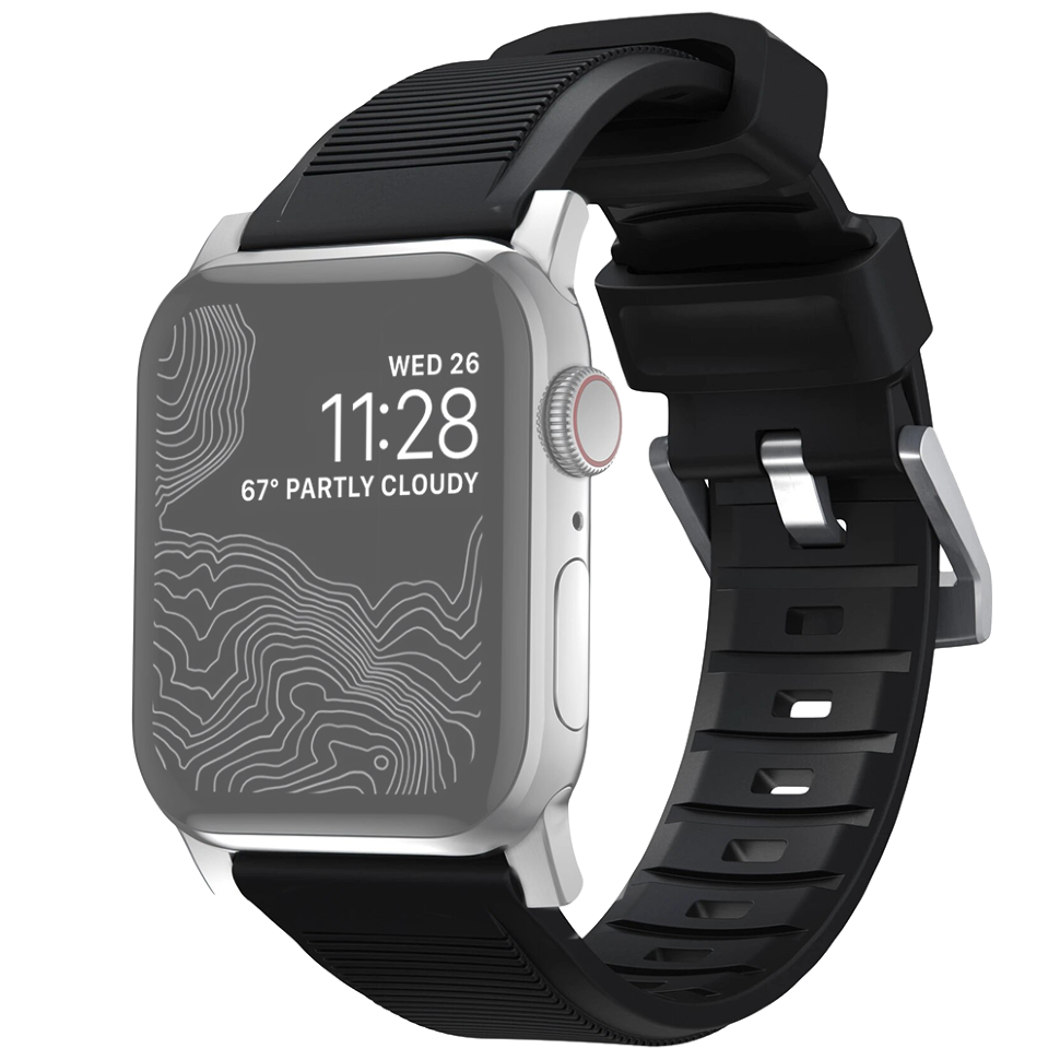 Ремешок Nomad Rugged Strap V2 для Apple Watch 40mm/38mm Материал флорэластомер ремешка черный застёжки серебряный