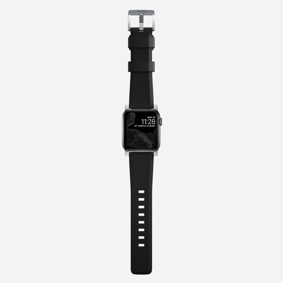 Ремешок Nomad Rugged Strap V2 для Apple Watch 44/42 mm Материал флорэластомер ремешка черный застёжки серебряный