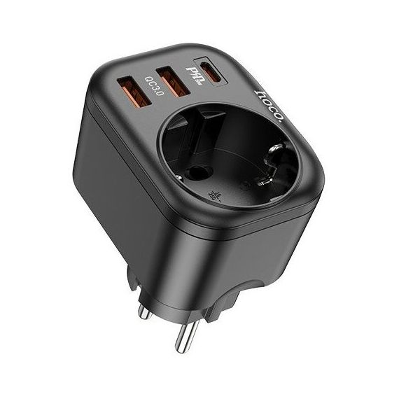 Переходник для розетки HOCO NS3 Multifunctional socket 1C2A PD20W, black