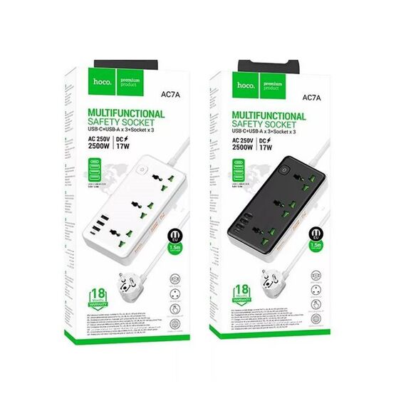 Переходник сетевой Hoco AC7A Storm 3-position socket (1C3A) (EU) (белый)