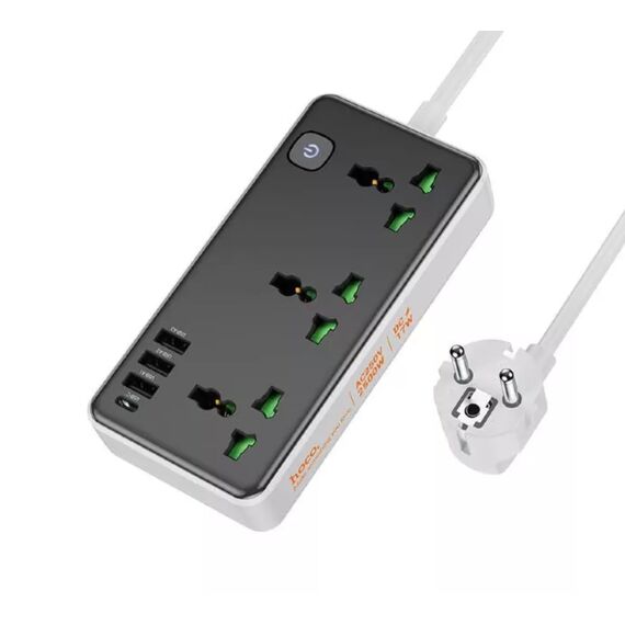 Переходник сетевой Hoco AC7A Storm 3-position socket (1C3A) (EU) (черный)