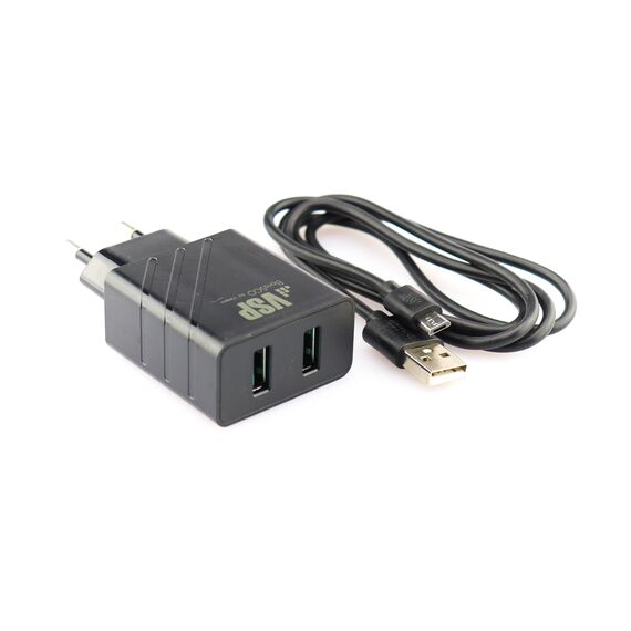 СЗУ 2 USB, 2,4A + Дата-кабель micro USB, 1м, черное, VSP (BoraSCO)