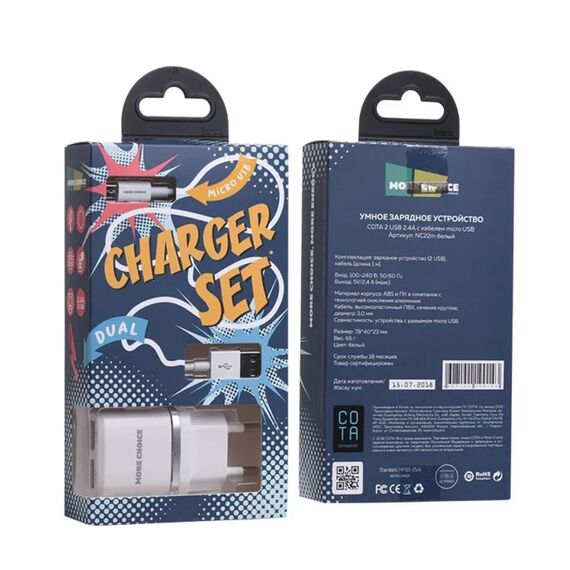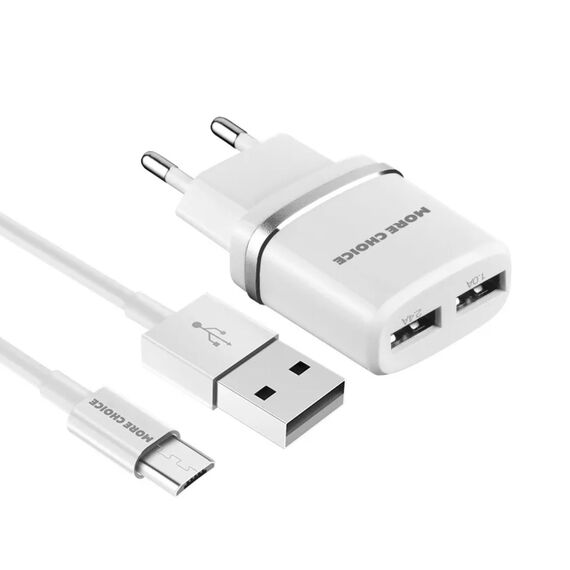 СЗУ 2USB 2.4A для micro USB More choice NC22m (белый)