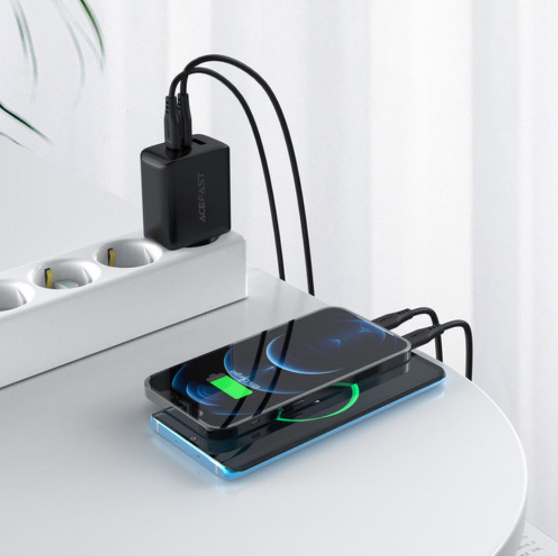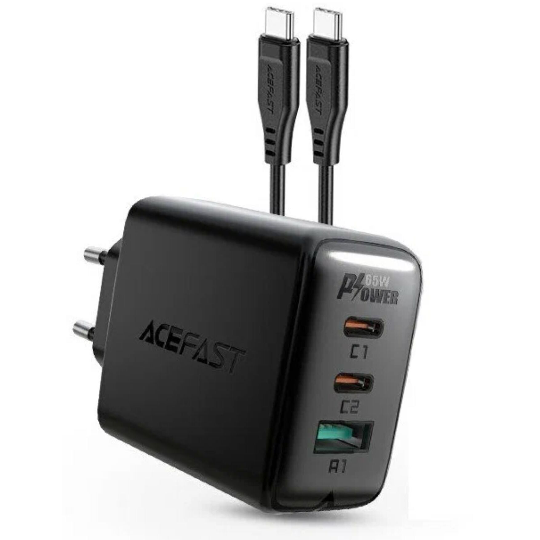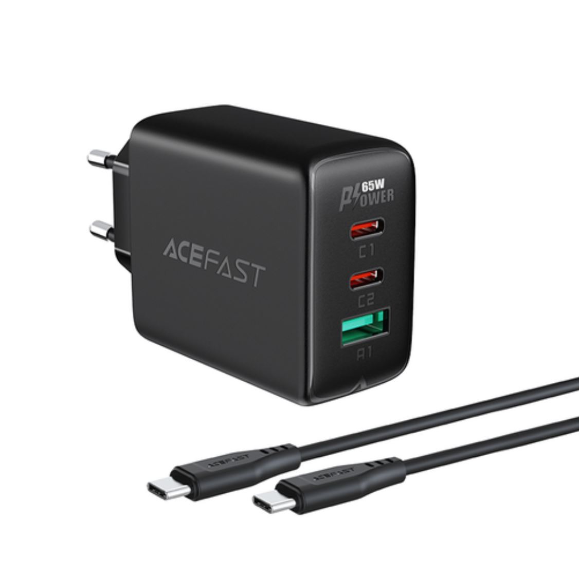 СЗУ Acefast A13 AF-A13-BK PD65W USB-C+USB-C+USB-A 3-port charger set EU Black