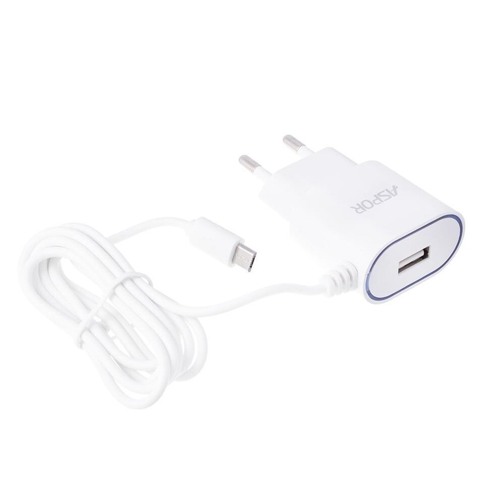 СЗУ Aspor А802 Micro цельный + 1USB (1,2м) (2,4А) Белый