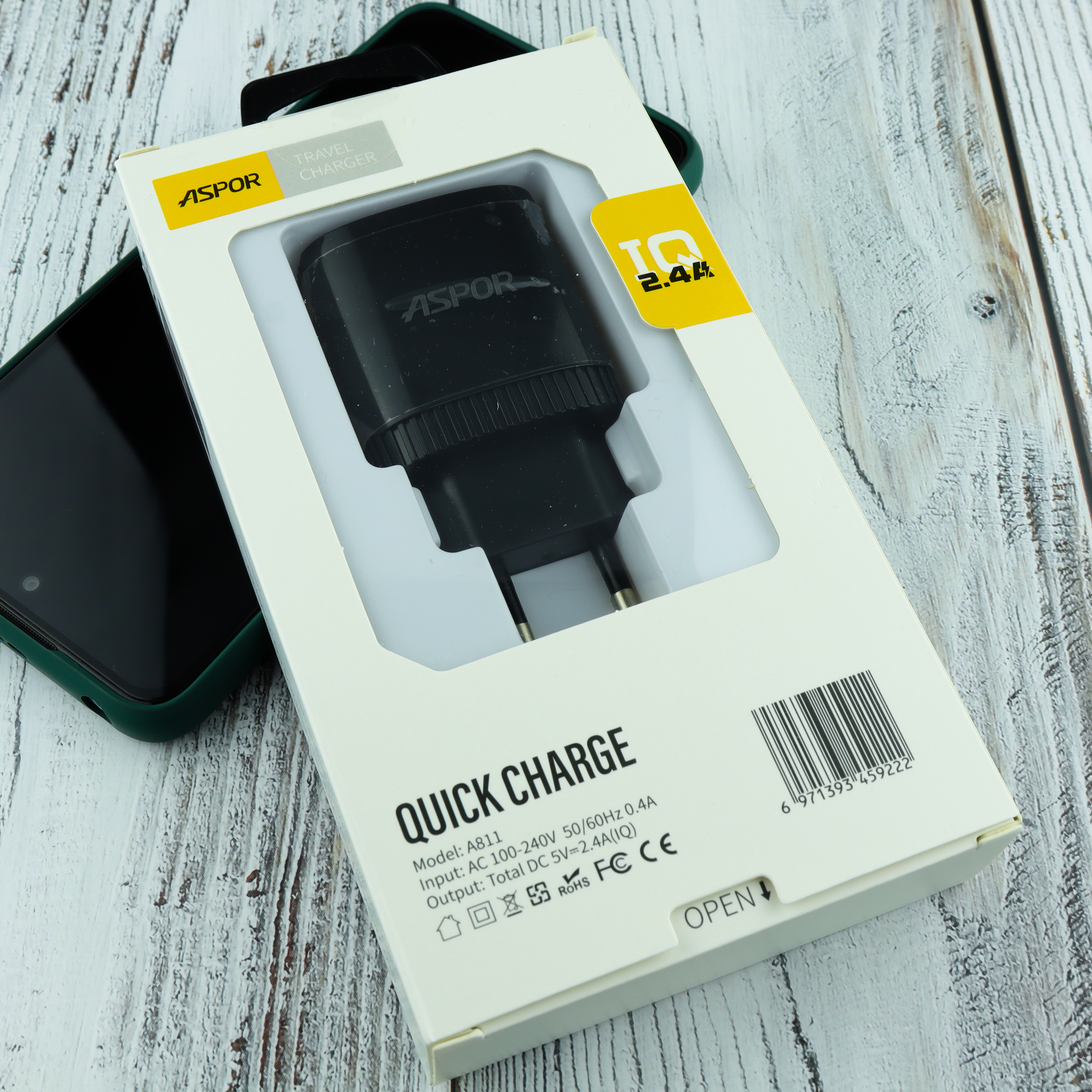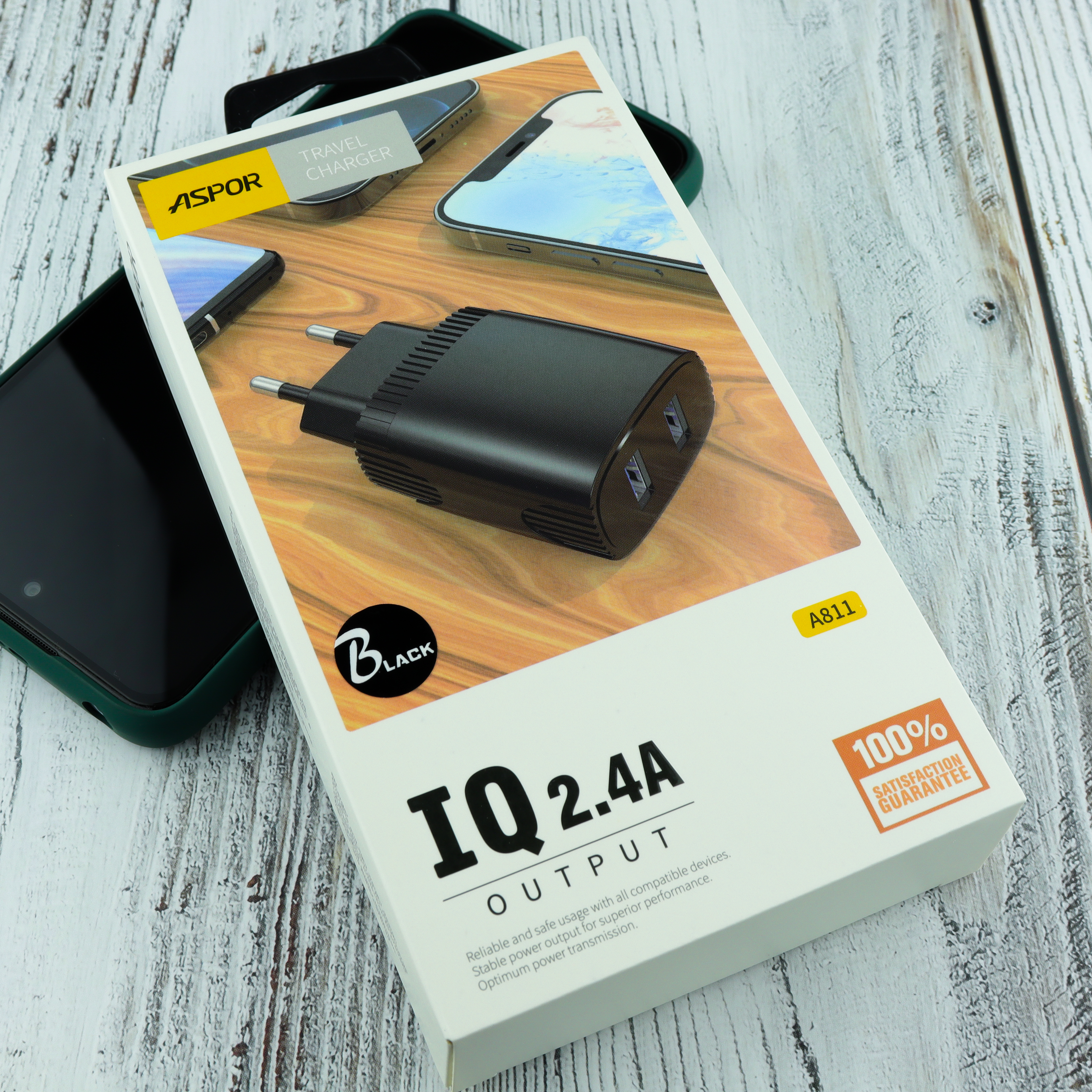 СЗУ Aspor A811 2USB 2.4A IQ, чёрный