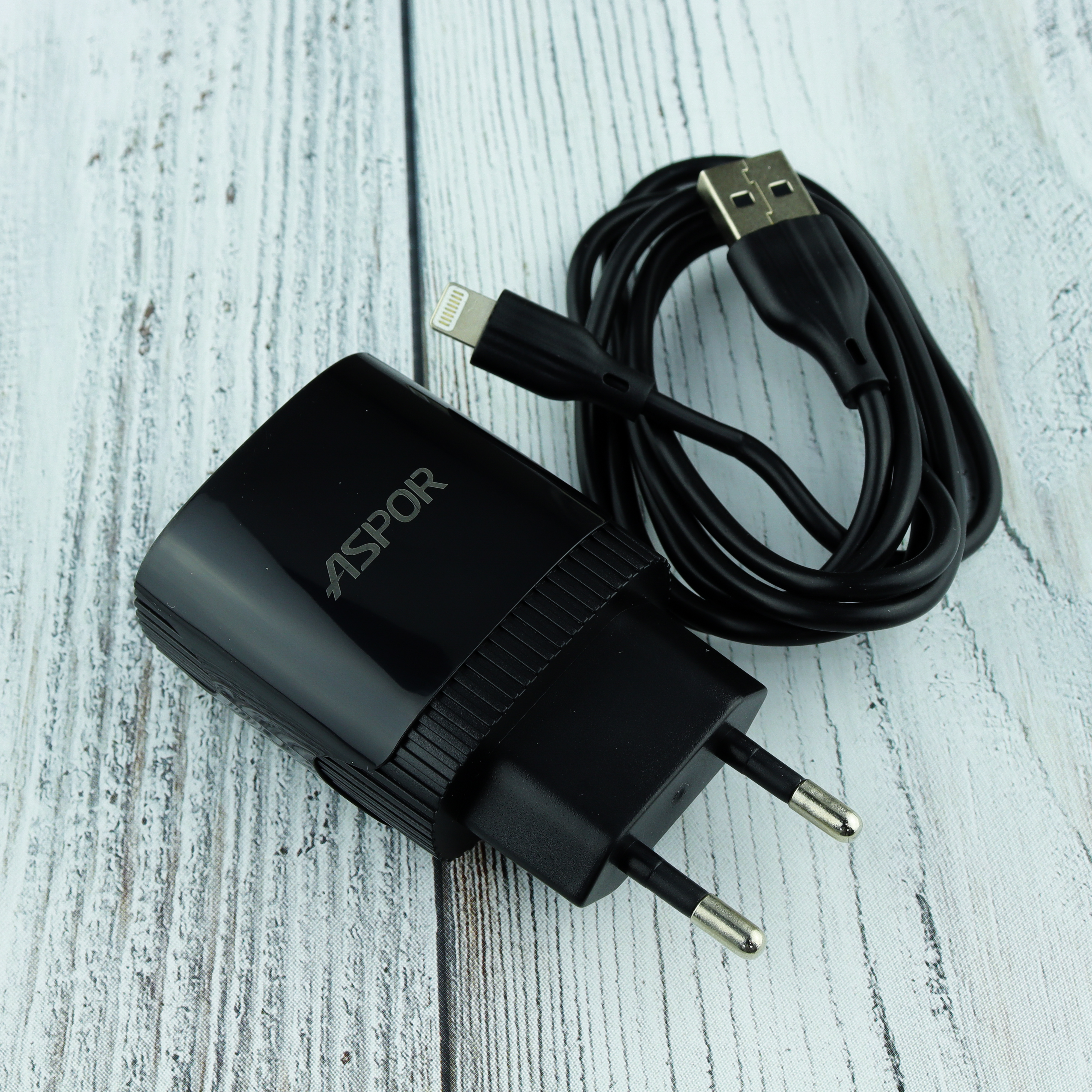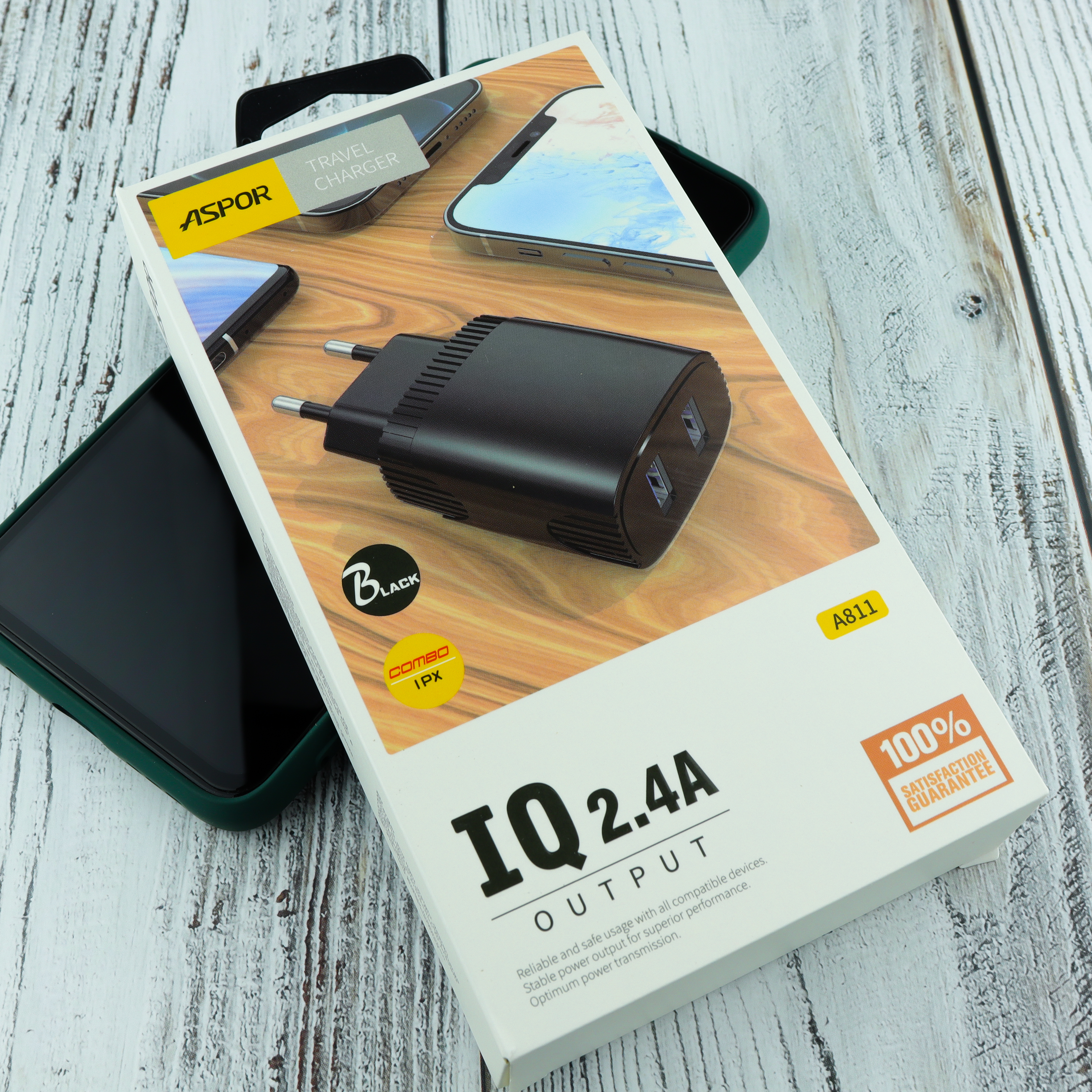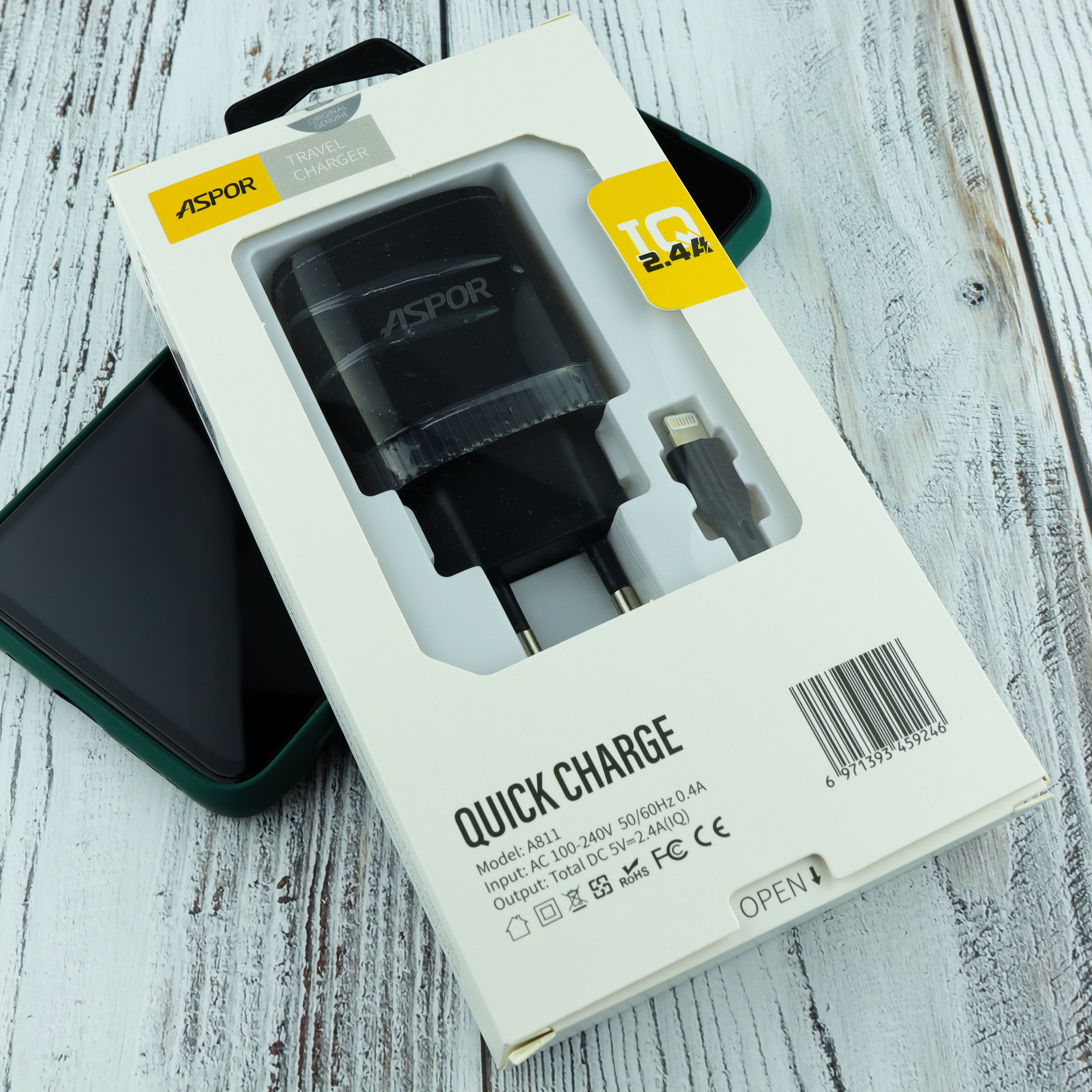 СЗУ Aspor A811 2USB 2.4A IQ + кабель Lightning, чёрный