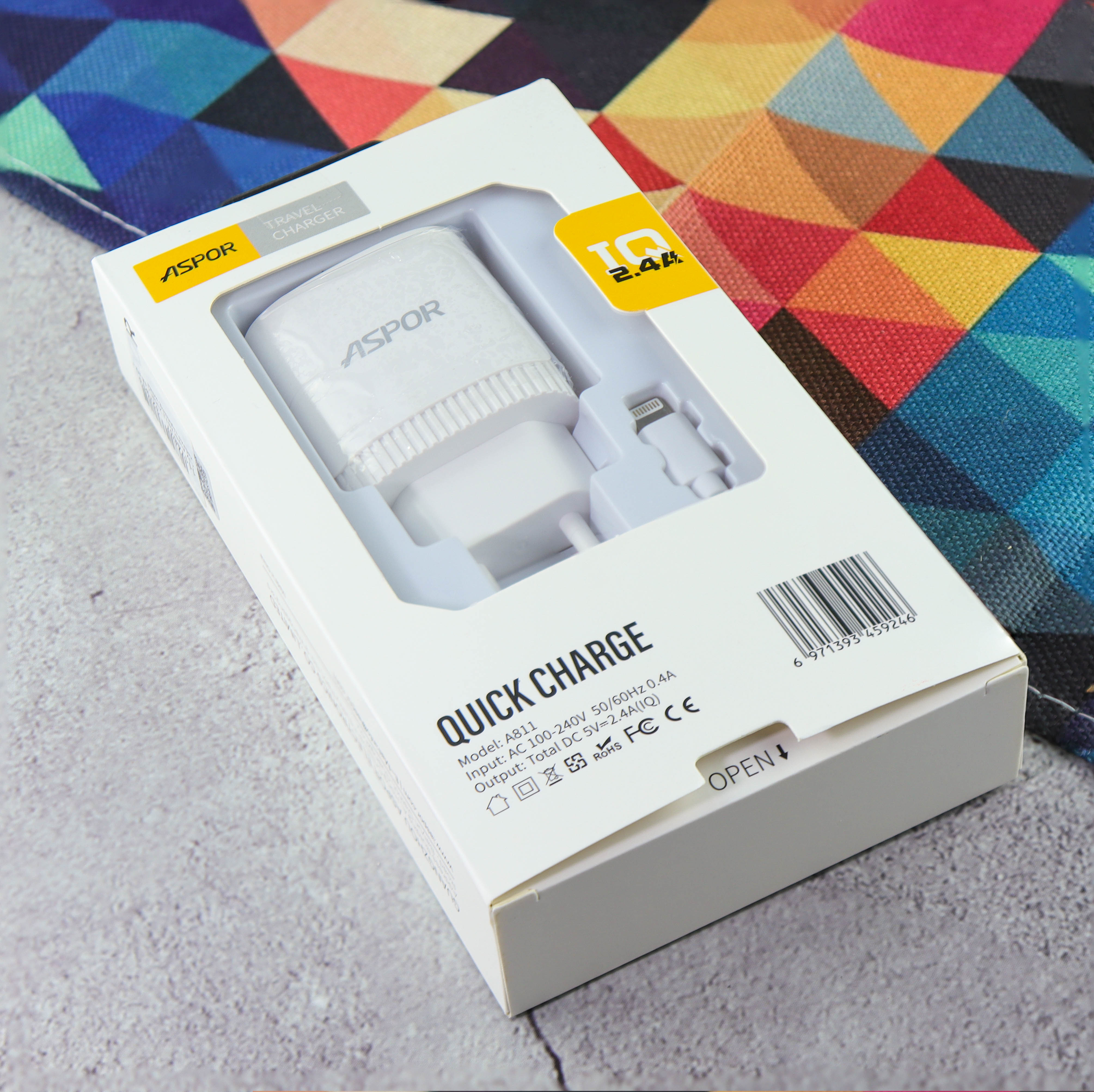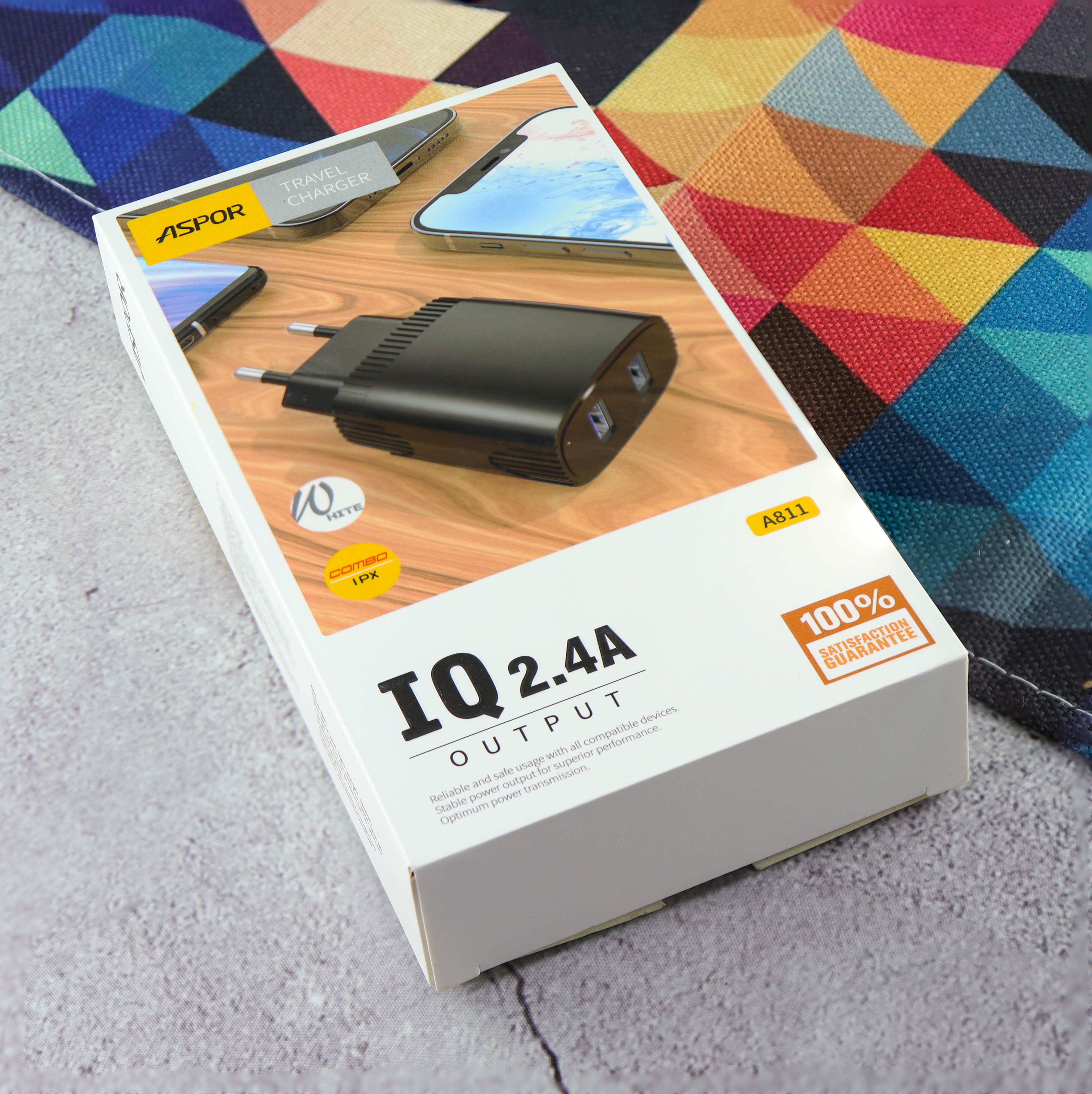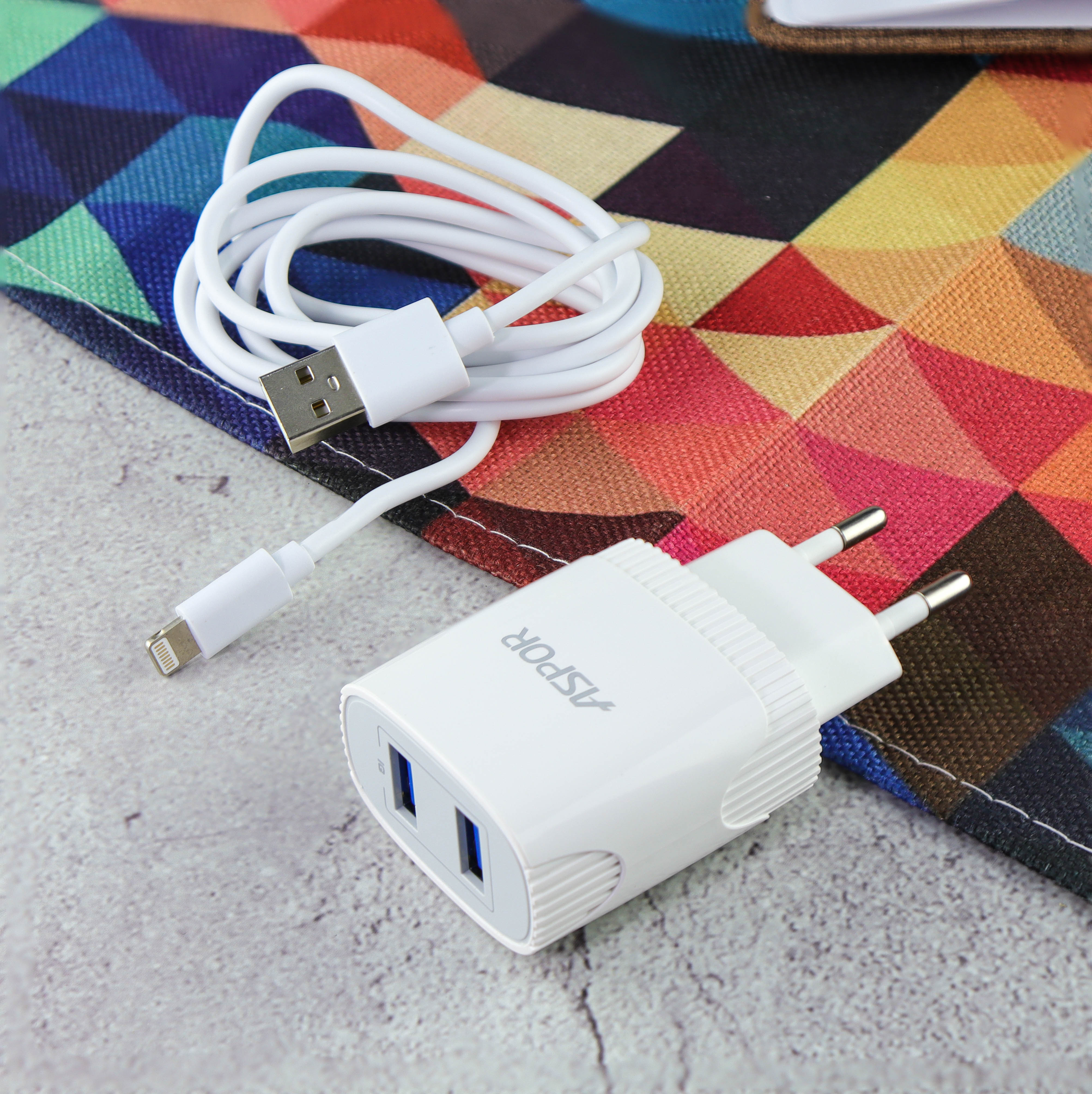 СЗУ Aspor A811 2USB 2.4A IQ + кабель Lightning, white
