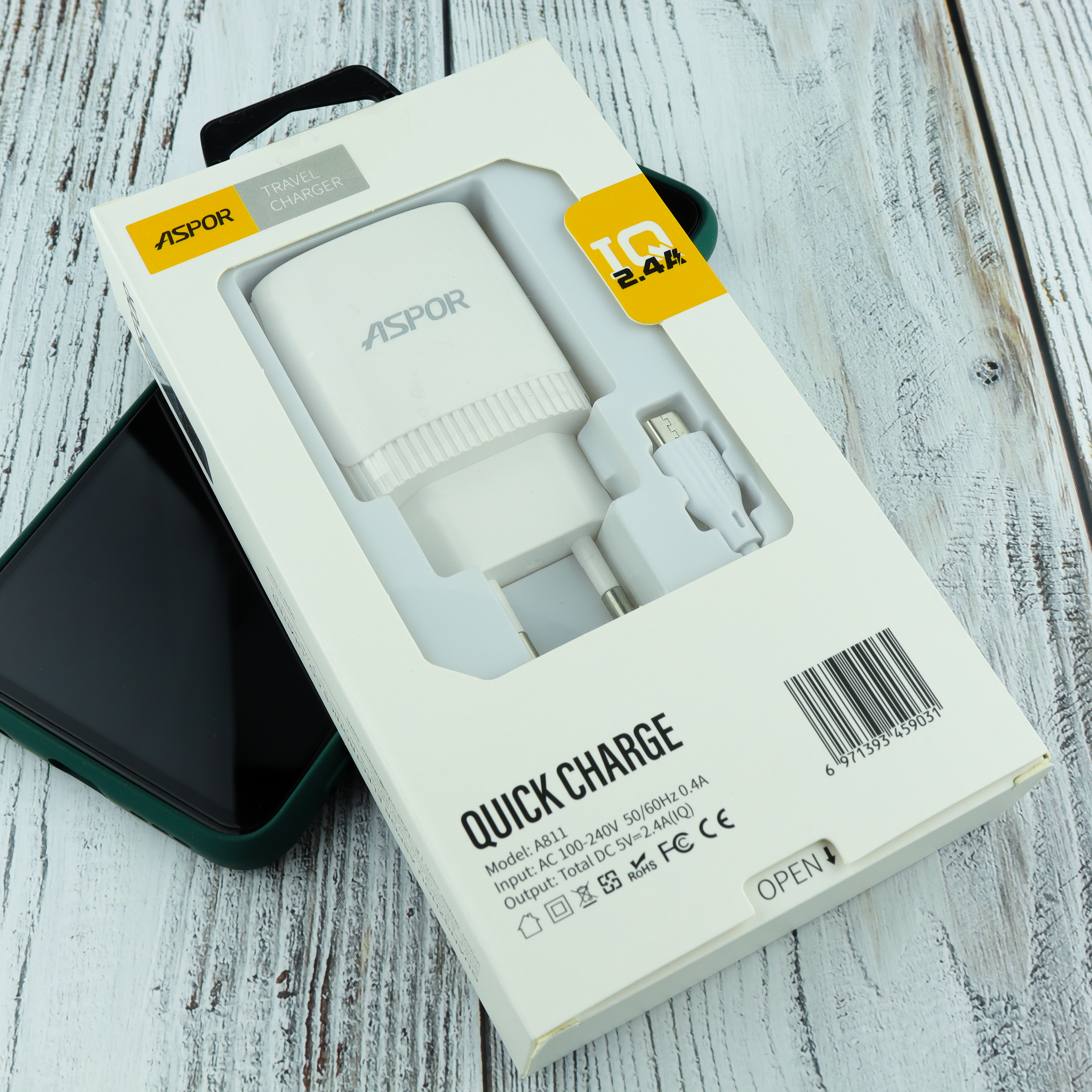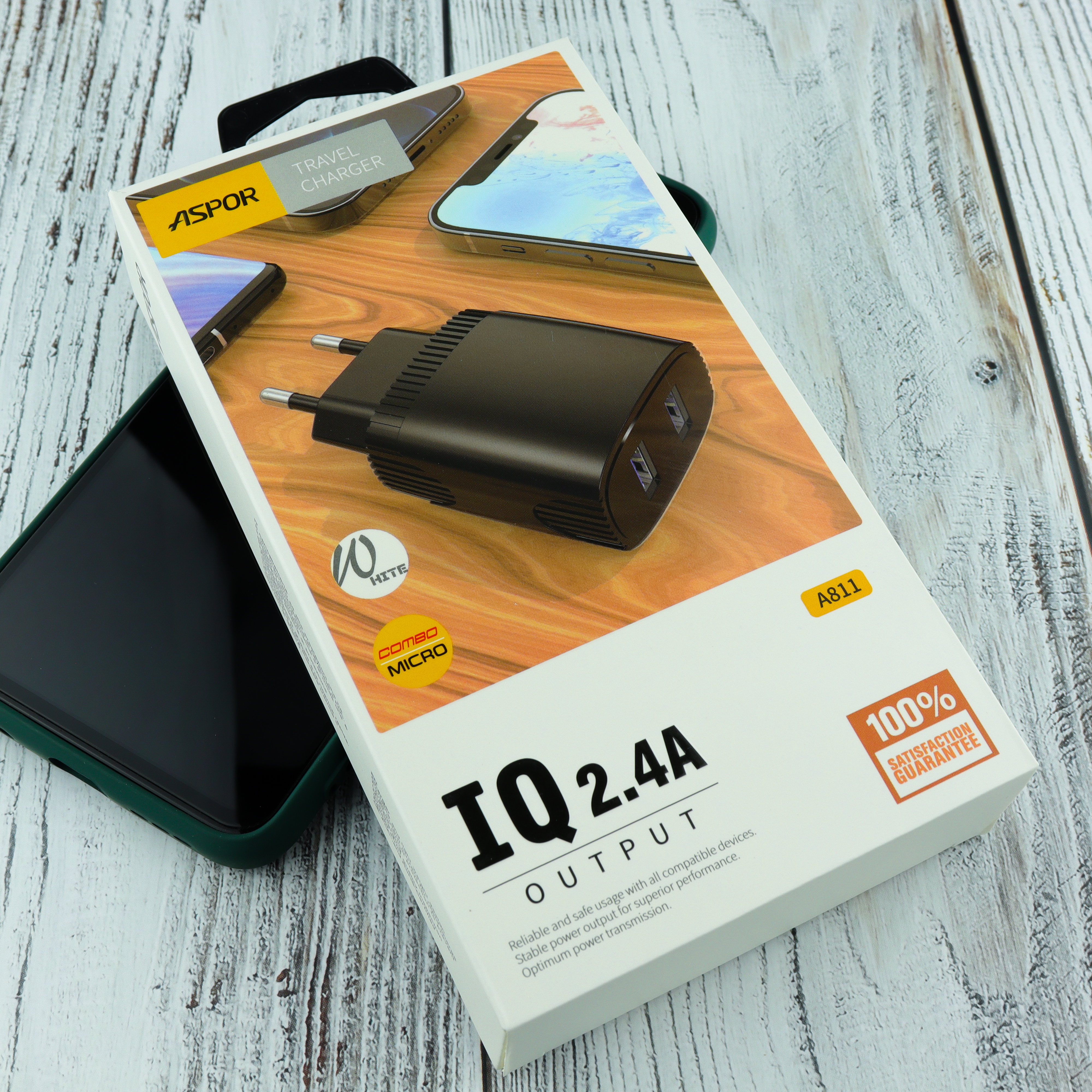 СЗУ Aspor A811 2USB 2.4A IQ + кабель Micro, белый