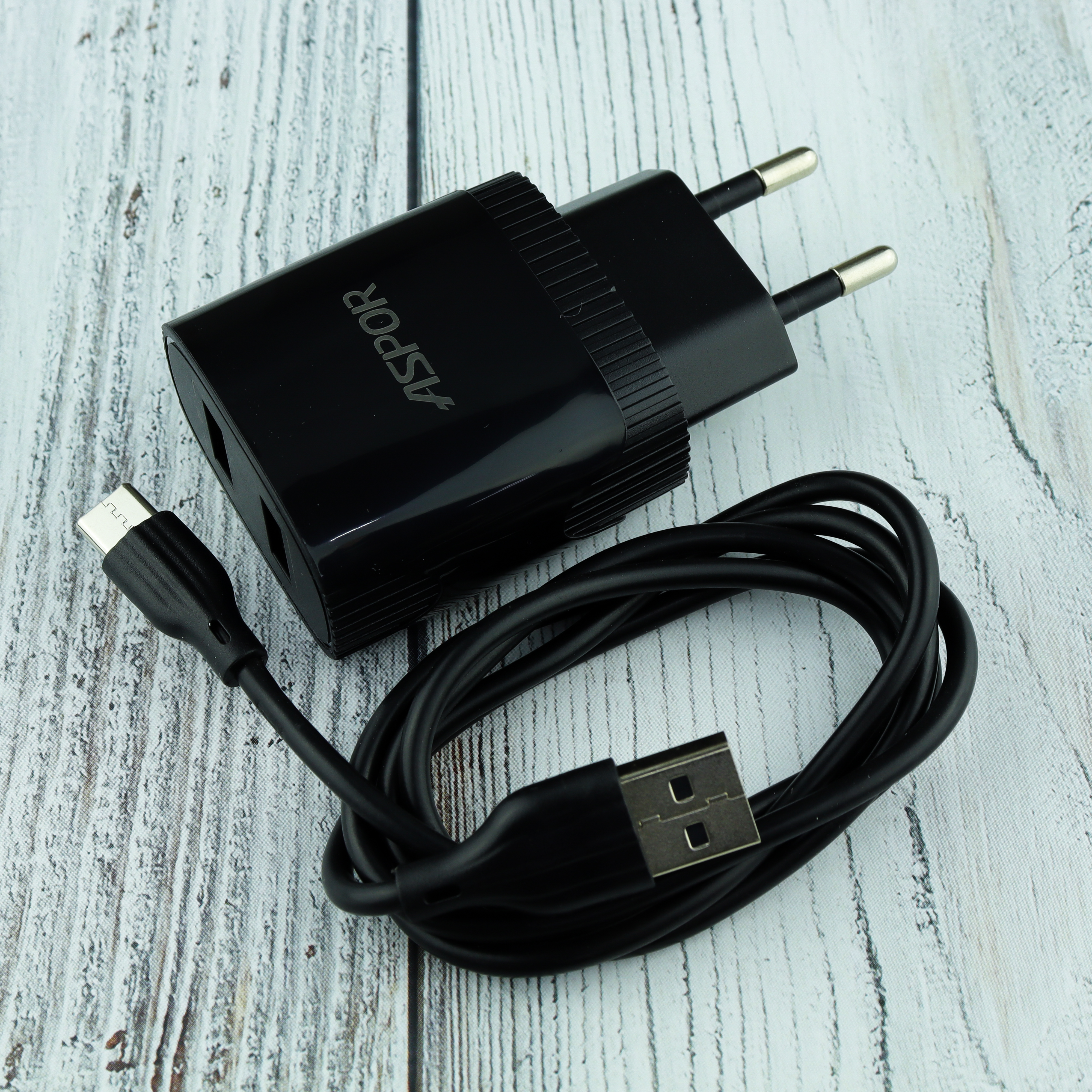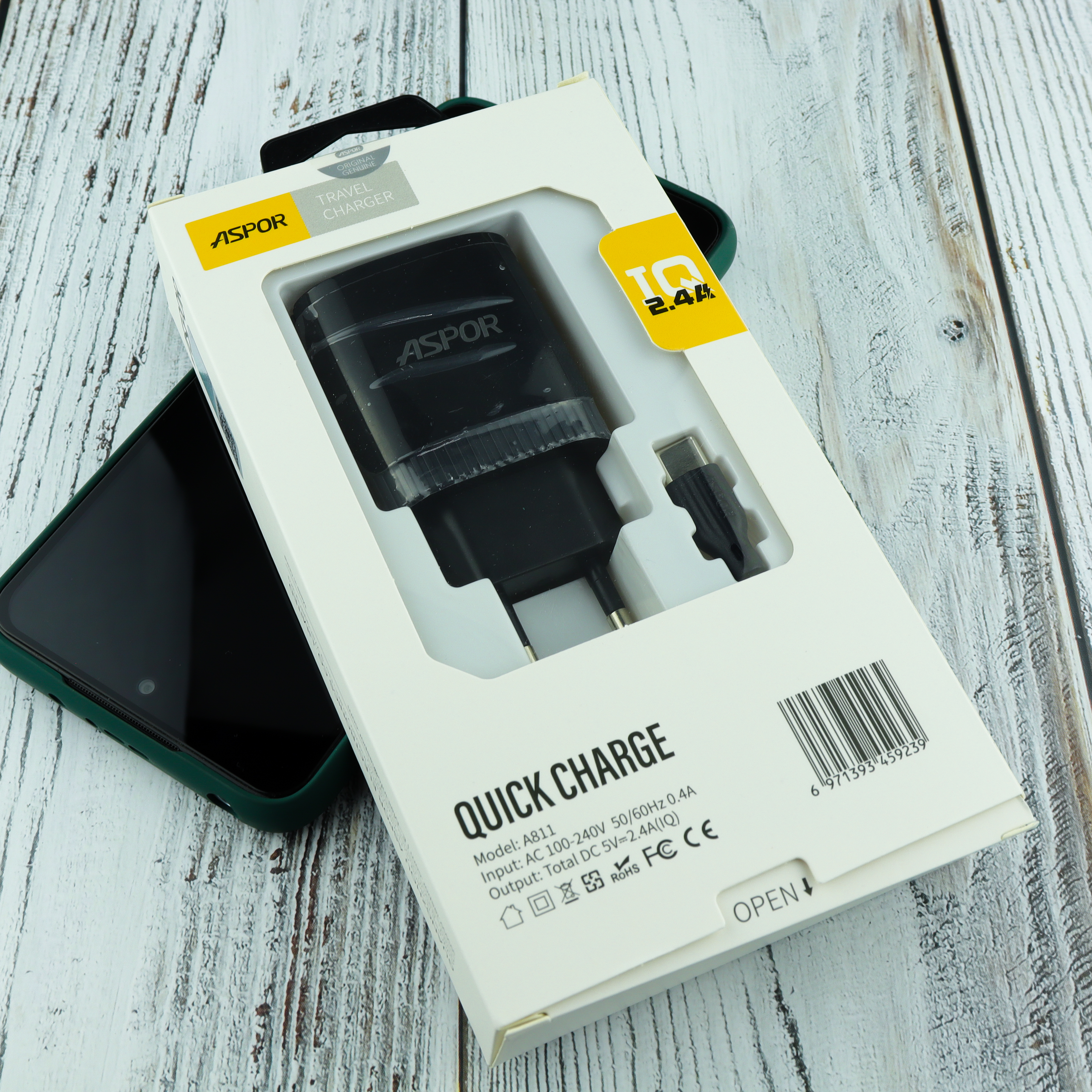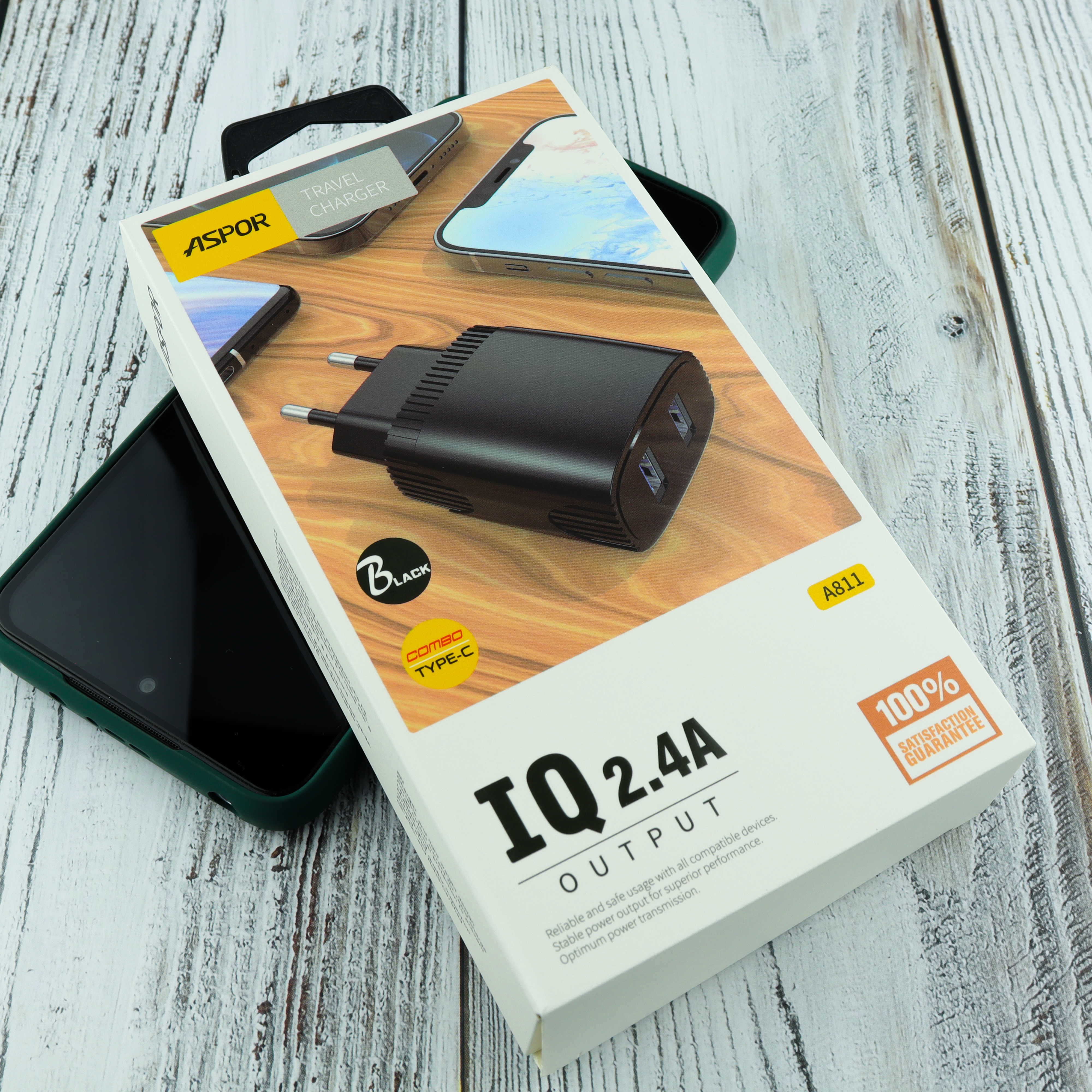 СЗУ Aspor A811 2USB 2.4A IQ + кабель Type-C, чёрный
