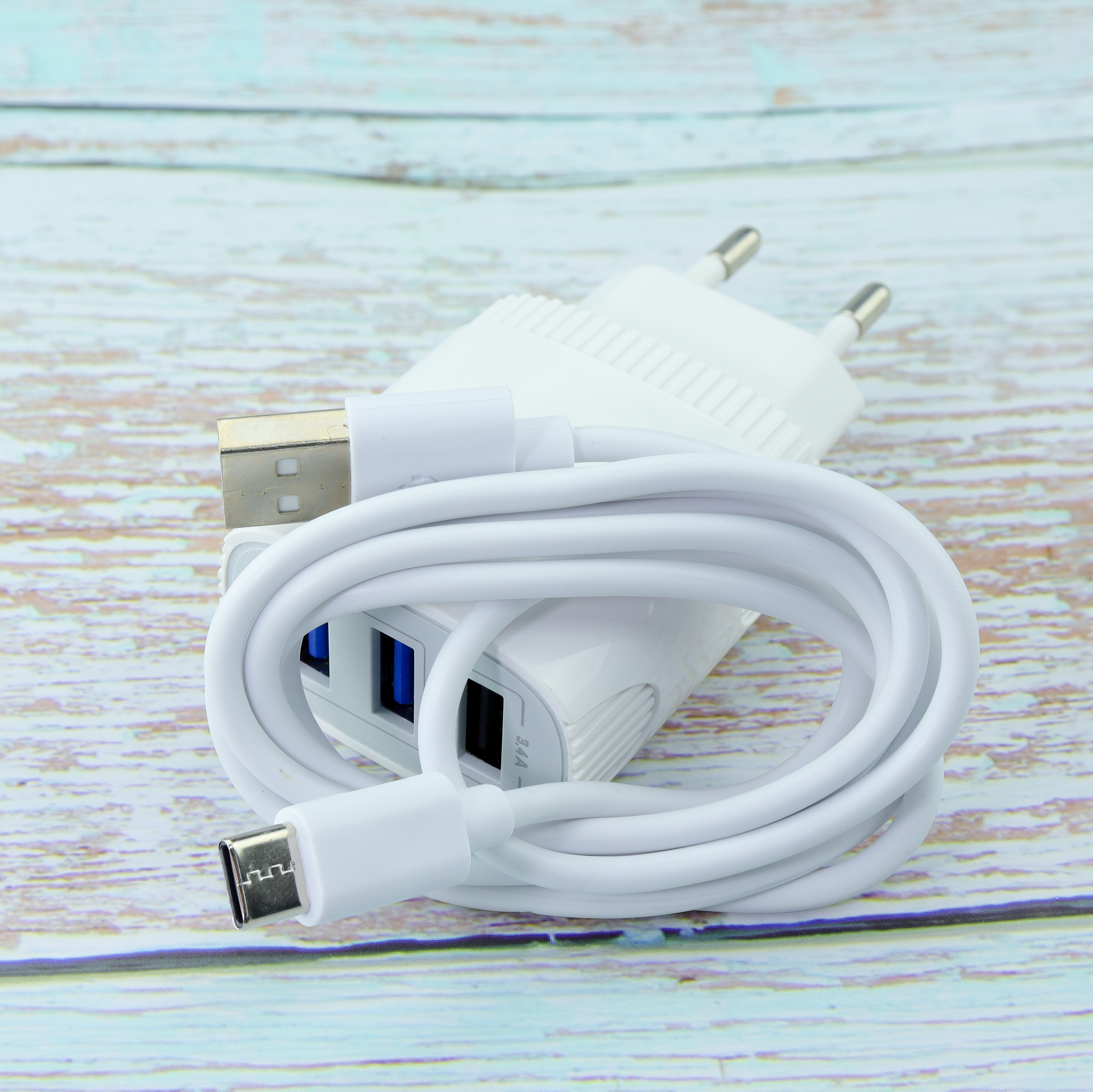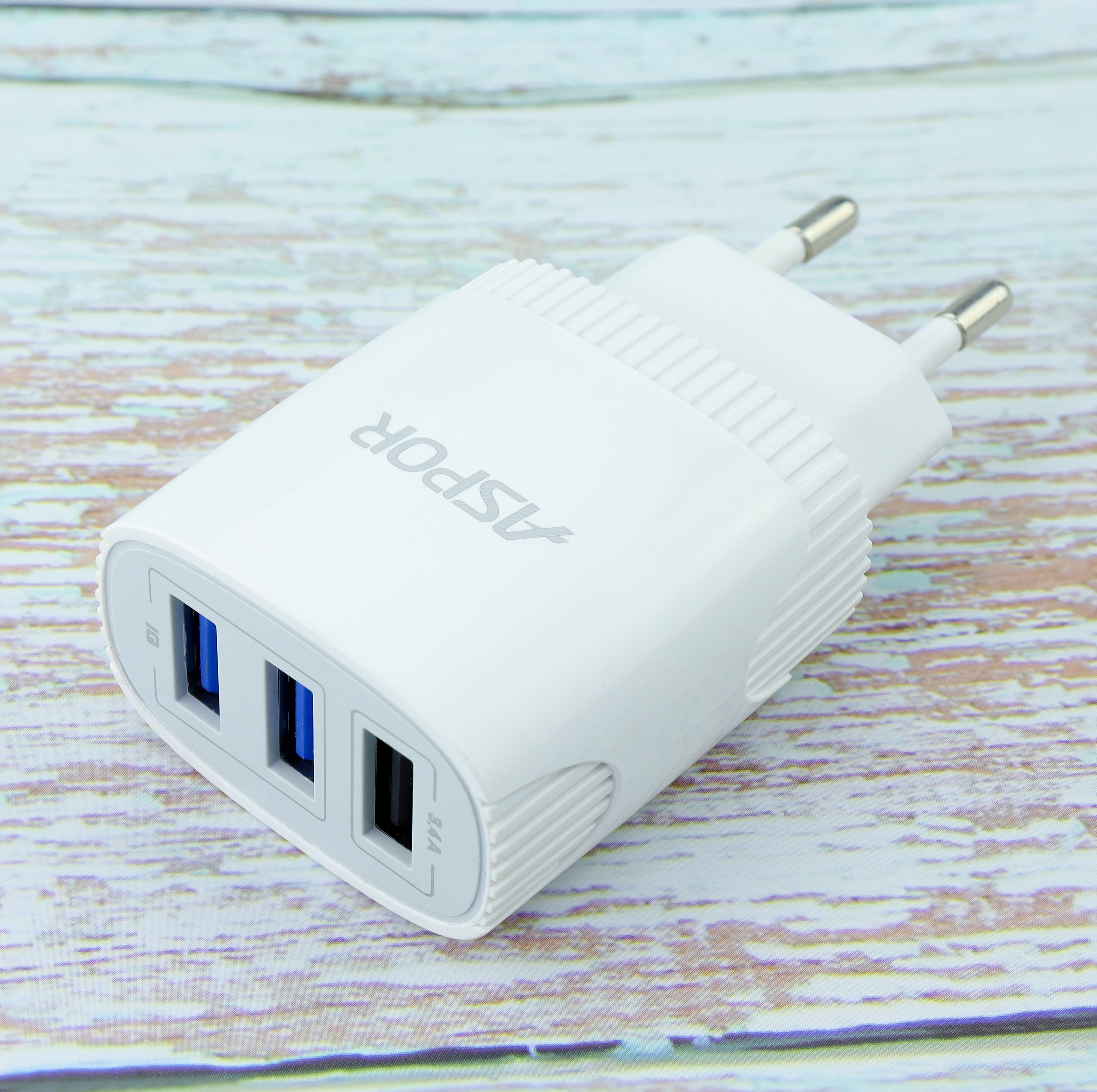 СЗУ Aspor A813 3USB 3.4A IQ + кабель TYPE-C, белый