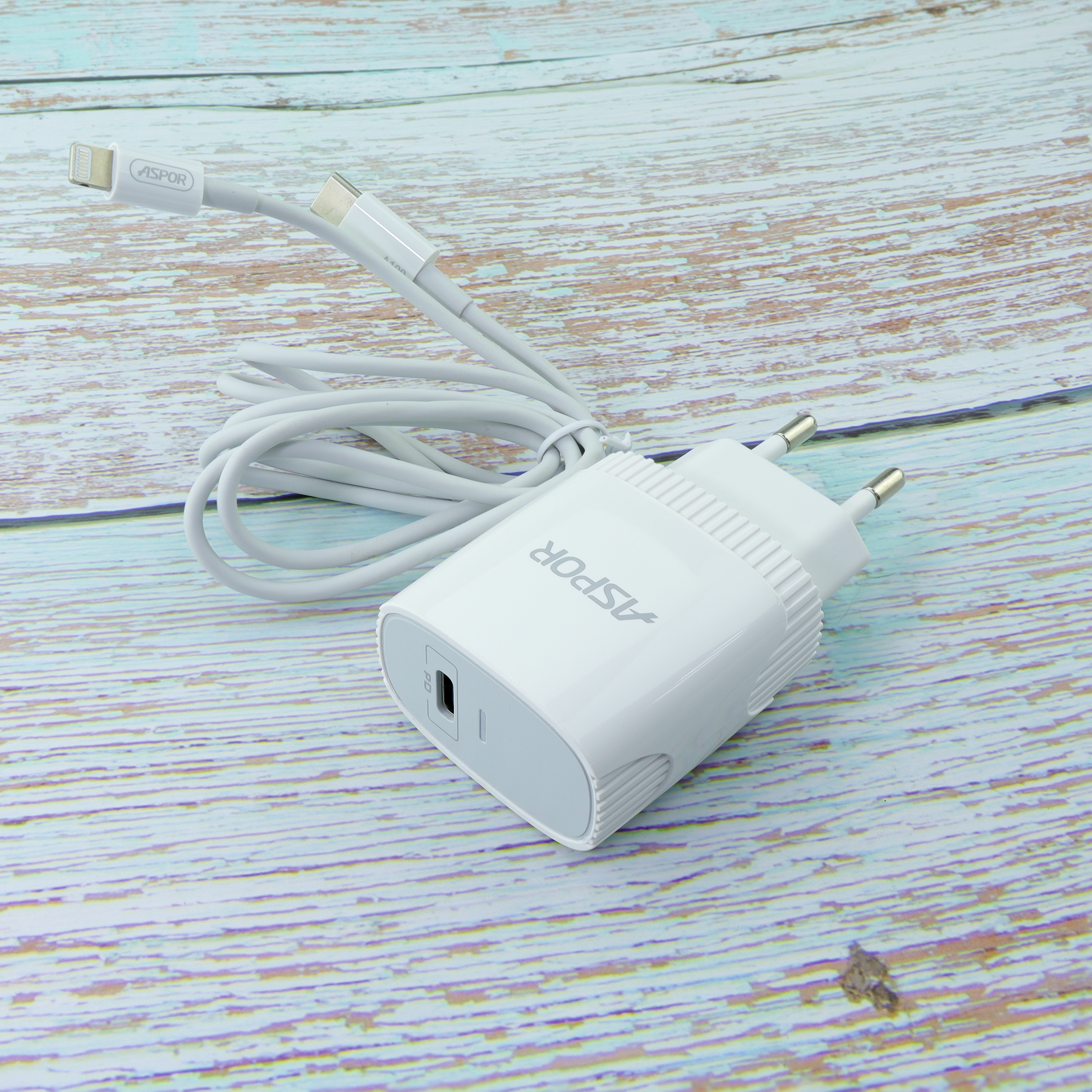 СЗУ Aspor A815 PD 20W Fast Charger EU PIN, Type-C + кабель Lightning, белый