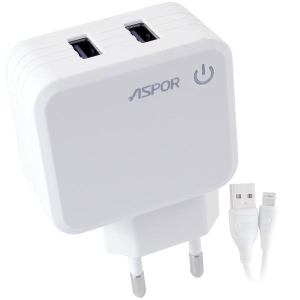 СЗУ Aspor А830 2USB + кабель Lightning (2.4A/IQ) Белый
