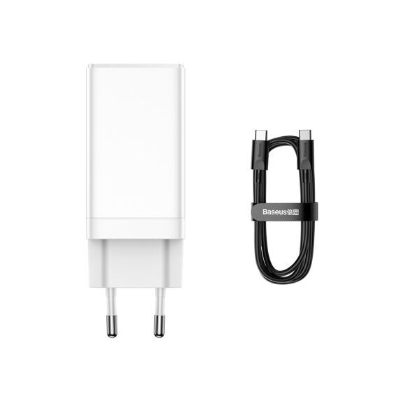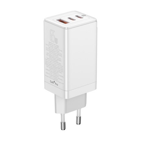 СЗУ BASEUS GaN3 Pro USB+2*USB-C + Кабель Type-C-Type-C, 3A, 65W с кабелем (белый)