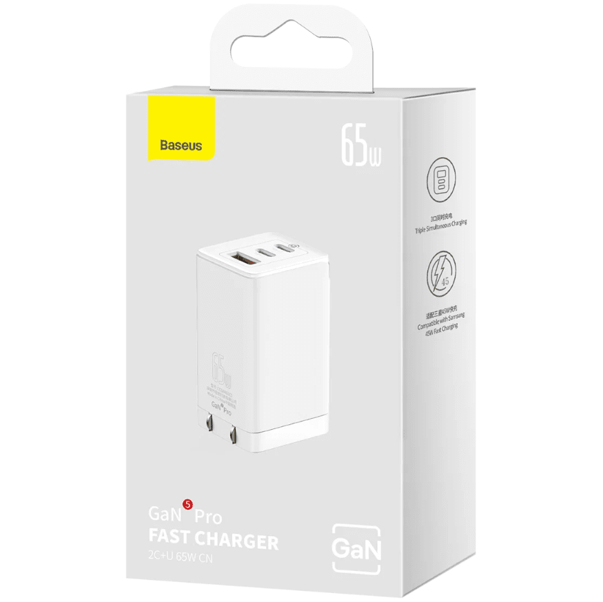СЗУ Baseus GaN5 Pro CCGP120202 Fast Charger 2C+U 65W EU Cable Type-C to Type-C 1m White