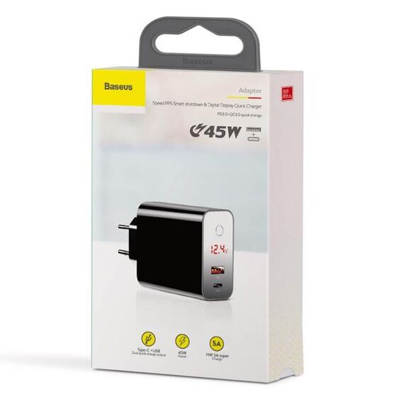 СЗУ Baseus Speed PPS smart shutdown&Digital Display touch charger 45W 1USB+USB Type-C EU Black