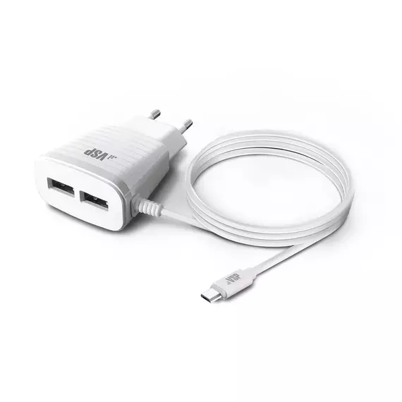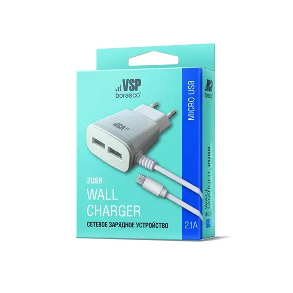 СЗУ Borasco 2USB, 2,1A, micro USB, белый