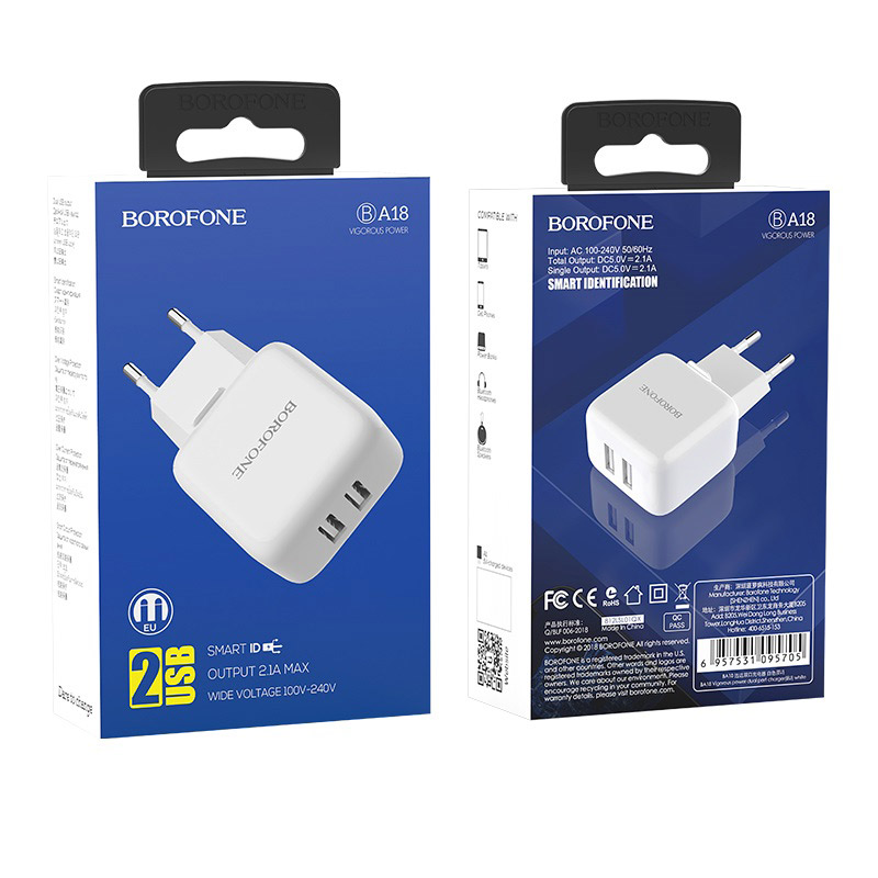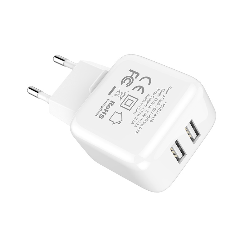 СЗУ Borofone BA18 5V/2,1A 2USB Vigorous power, white