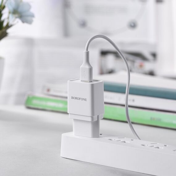СЗУ Borofone BA19A 5V/1A 1USB Nimble single port + Micro, white