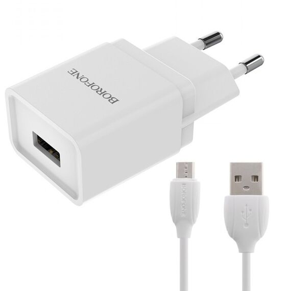 СЗУ Borofone BA19A 5V/1A 1USB Nimble single port + Micro, white (о)