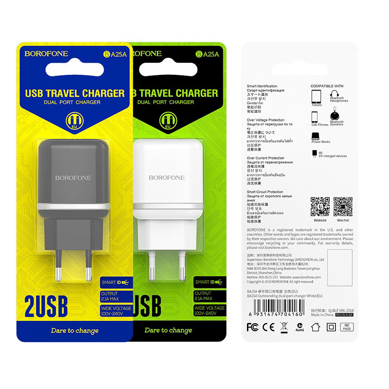 СЗУ Borofone BA25A 5V/2.1A 2USB Outstanding, black