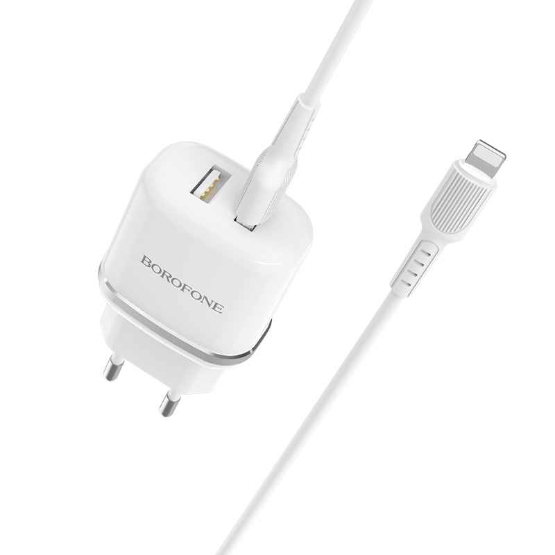 СЗУ Borofone BA25A 5V/2.1A 2USB Outstanding + lightning cable, white