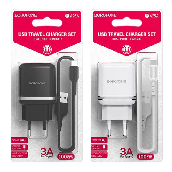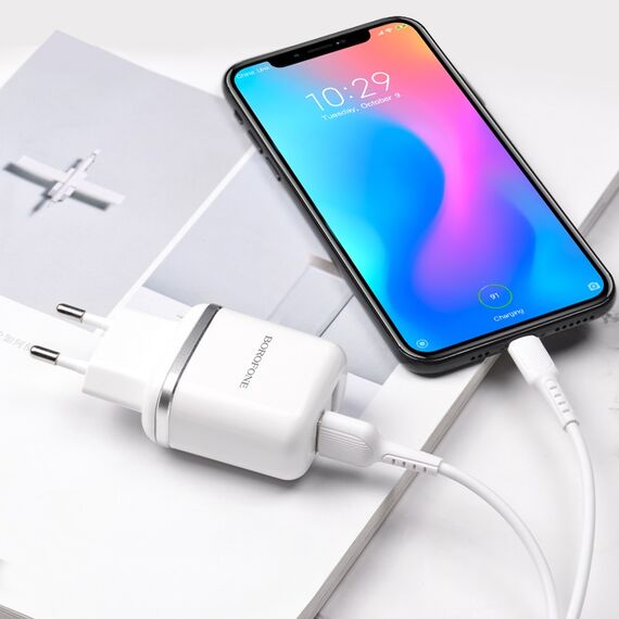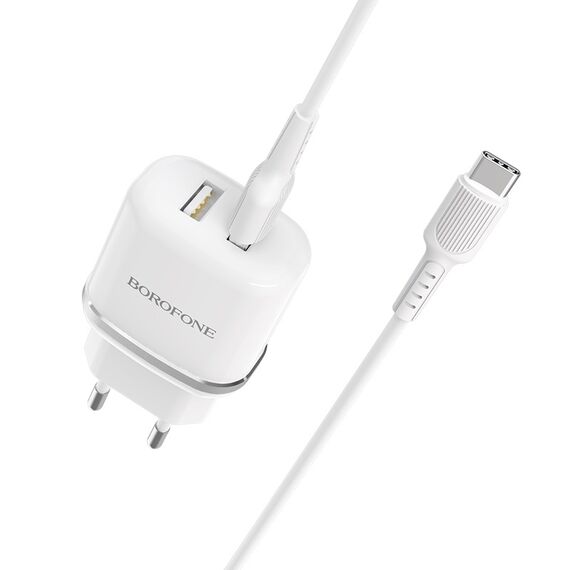 СЗУ Borofone BA25A 5V/3A 2USB Outstanding dual port + Type-C cable, white