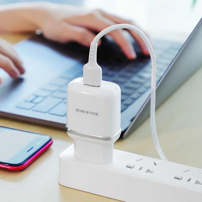 СЗУ Borofone BA36A High speed single port QC3.0, + Micro cable, white (о)
