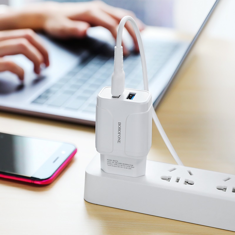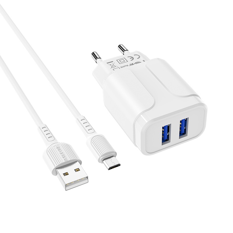 СЗУ Borofone BA37A Speedy 5V/2,4A 2USB + micro, white
