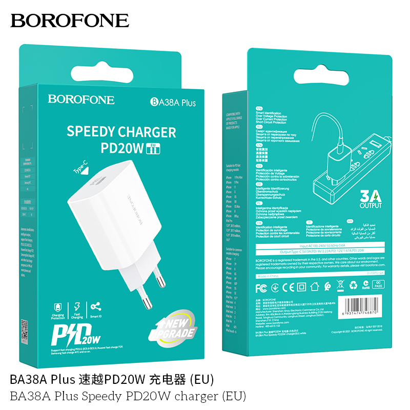 СЗУ Borofone BA38A Plus Speedy PD20W charger, white