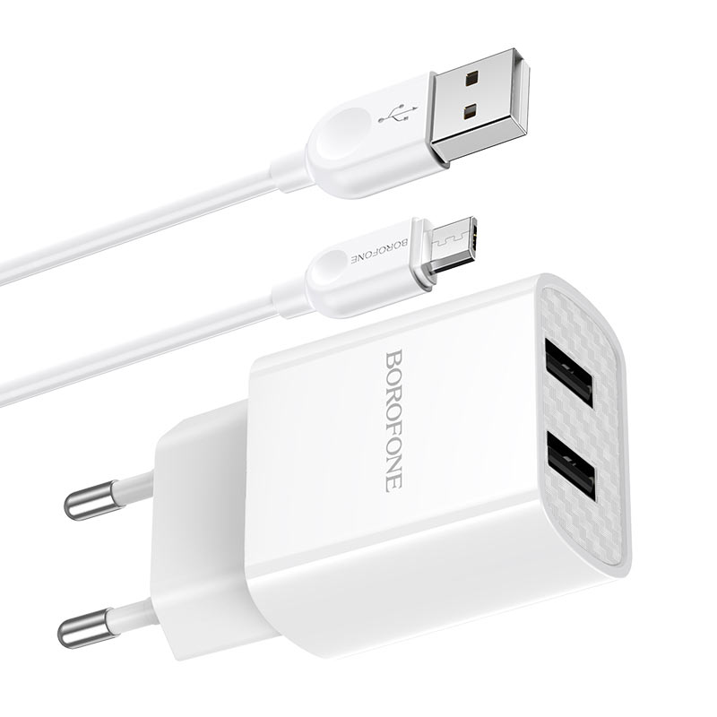 СЗУ Borofone BA53A Powerway dual port 2.1A + Micro, white