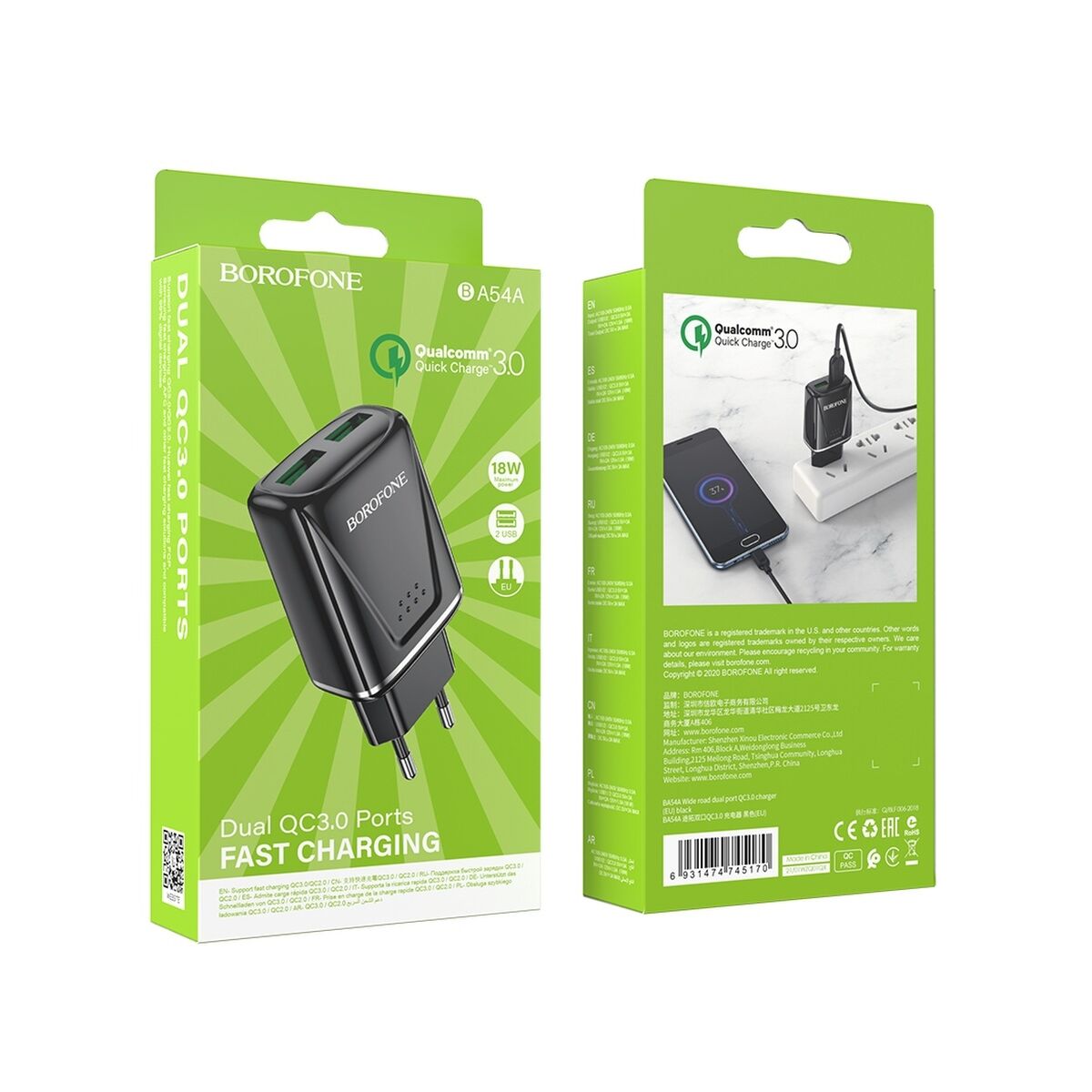 СЗУ Borofone BA54A Wide road dual port QC3.0, black