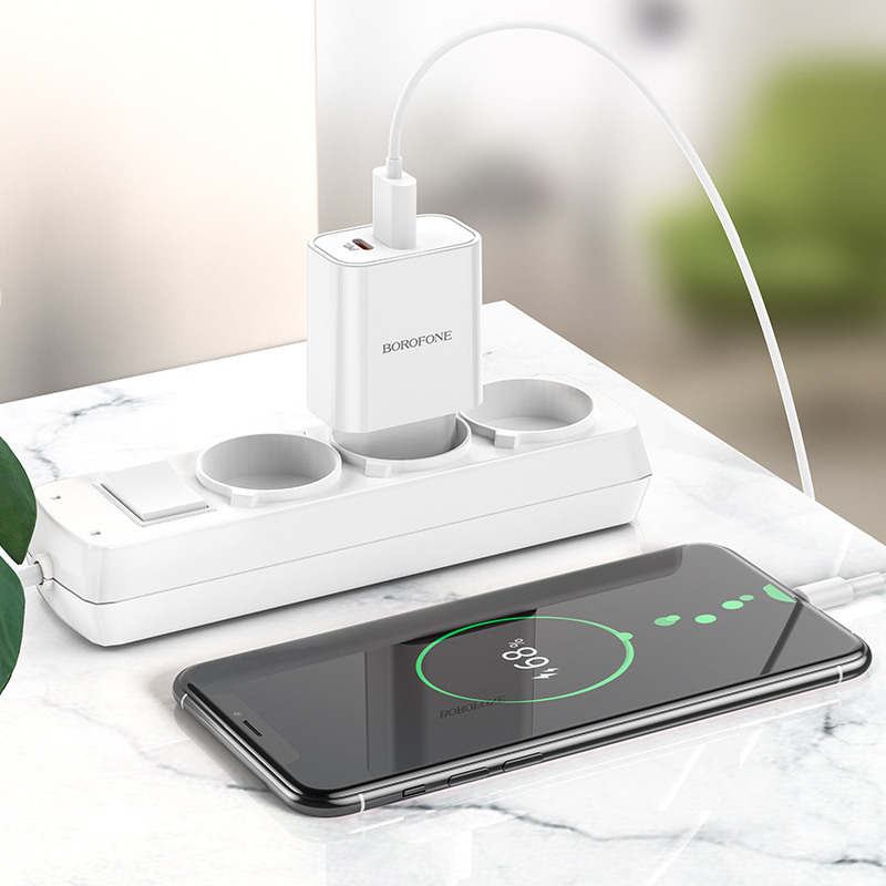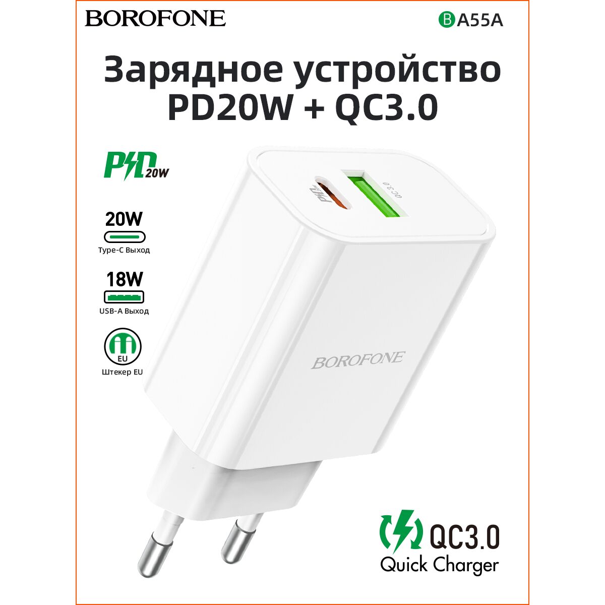 СЗУ Borofone BA55A Crown speed dual port PD20W+QC3.0 charger, white