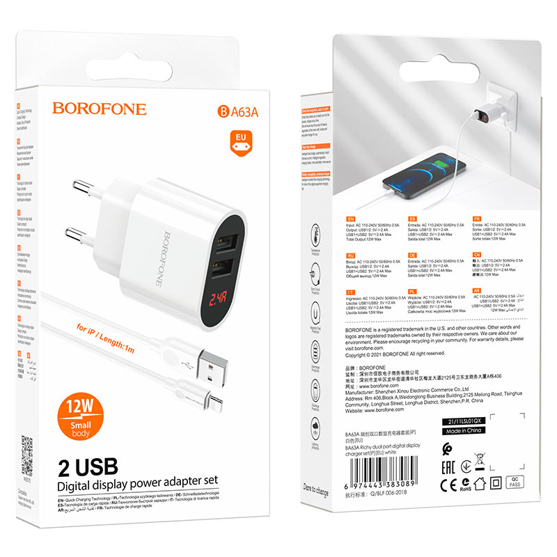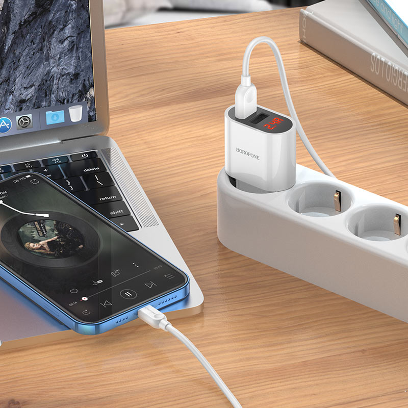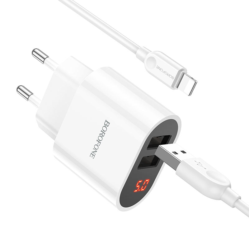 СЗУ Borofone BA63A Richy dual port digital display+lightning, white