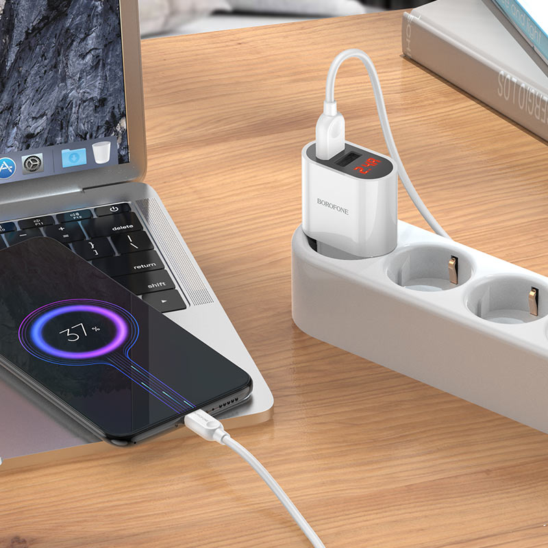 СЗУ Borofone BA63A Richy dual port digital display+Micro, white
