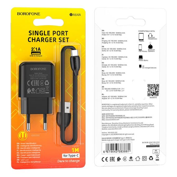 СЗУ Borofone BA64A Single port charger set Type-C (черный)