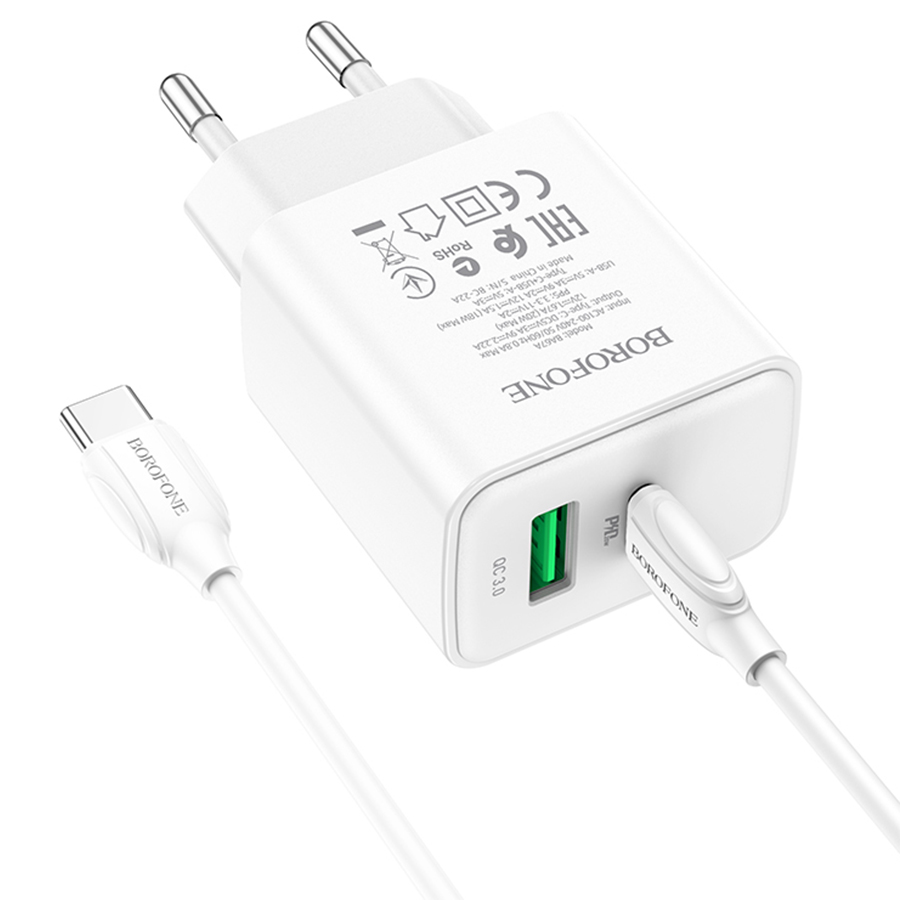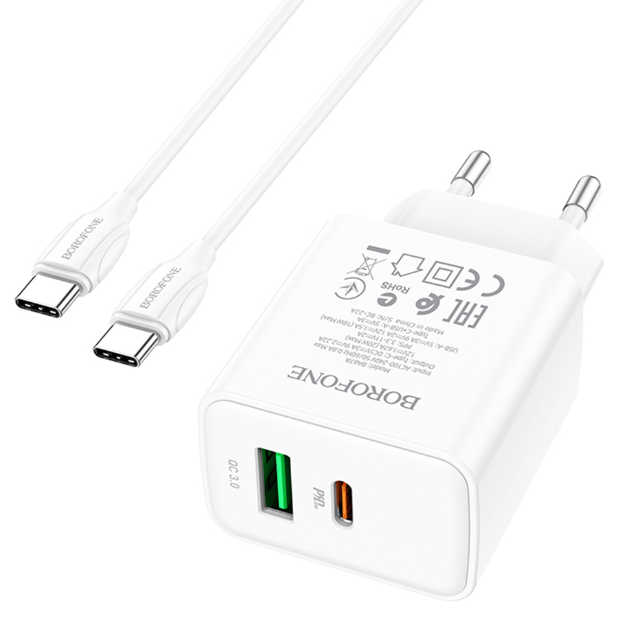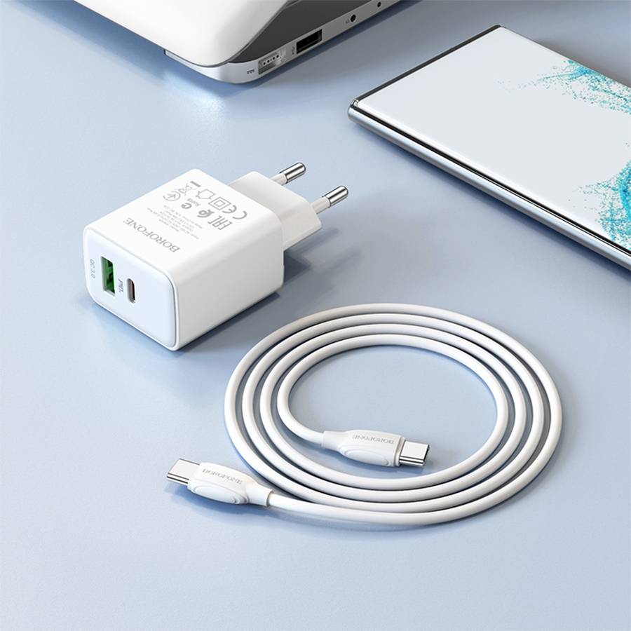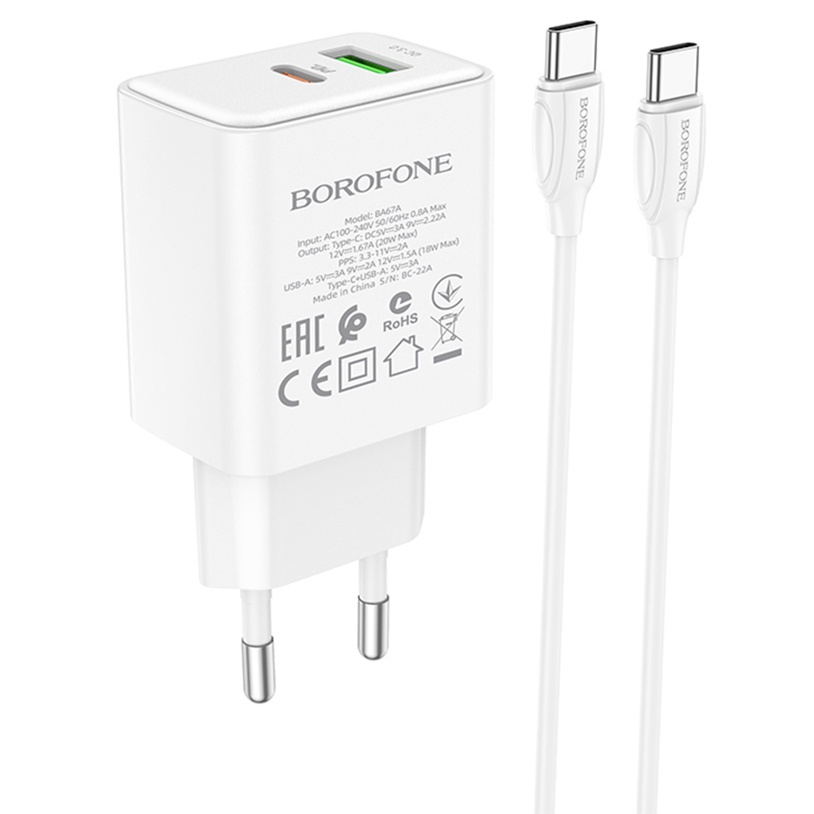СЗУ Borofone BA67A PD20W+QC3.0 charger set Type-C to Type-C (EU) (белый)