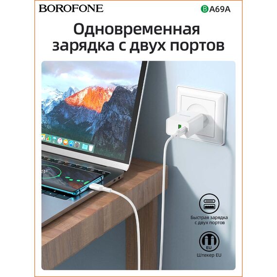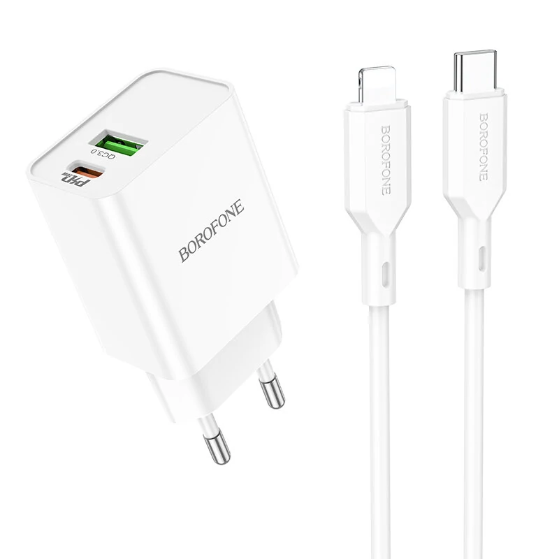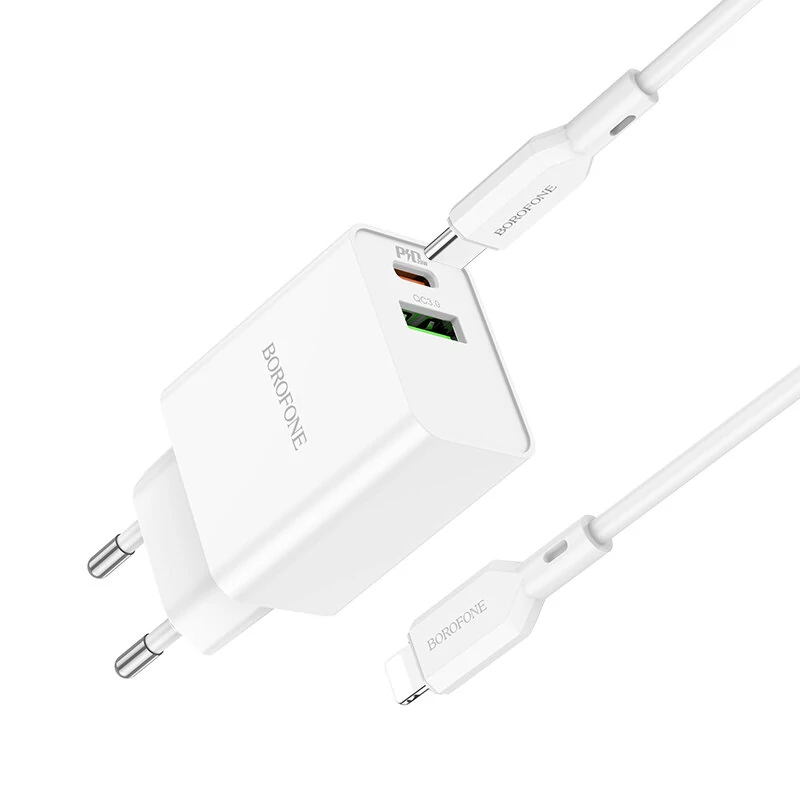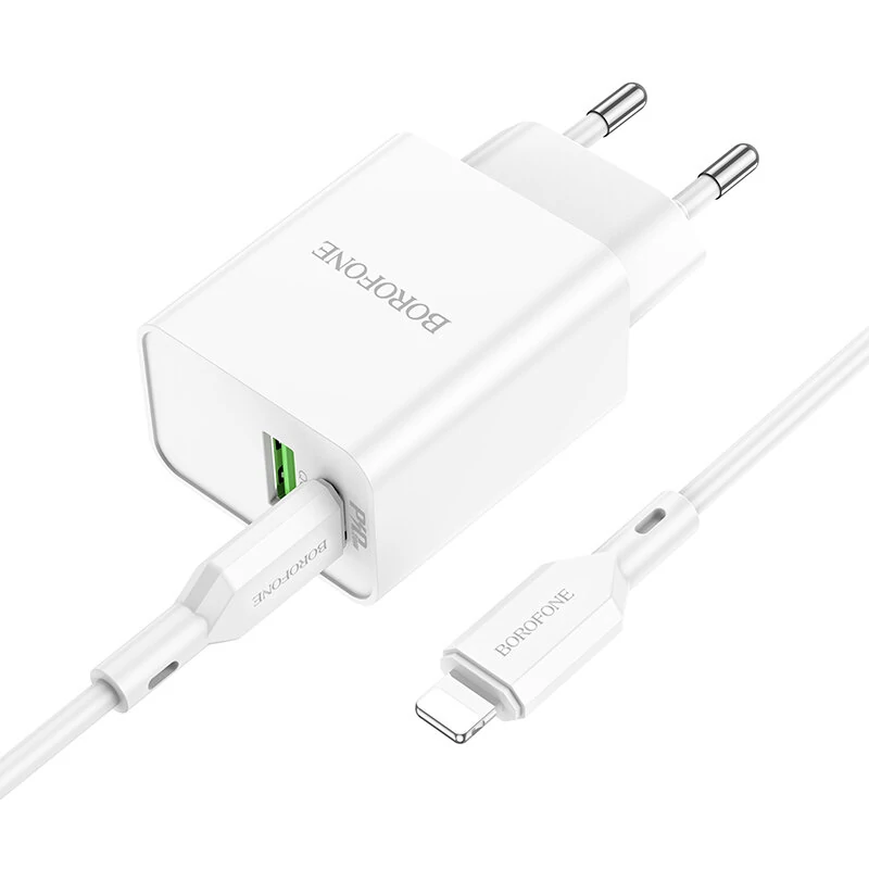 СЗУ BOROFONE BA69A Resource PD20W, QC3.0 charger, Type-C to lightning (EU), (белый)