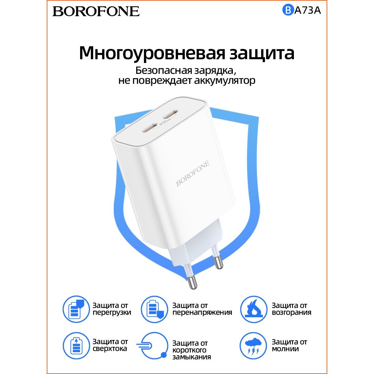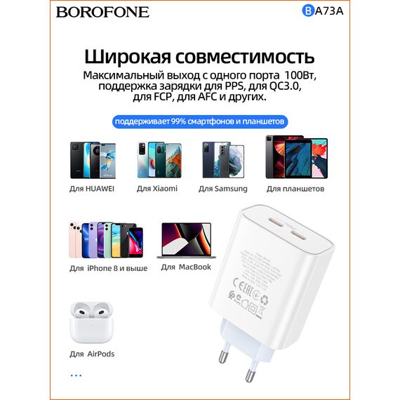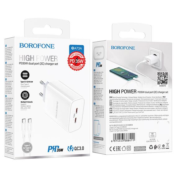СЗУ Borofone BA73A Young PD35W dual port charger (EU), white