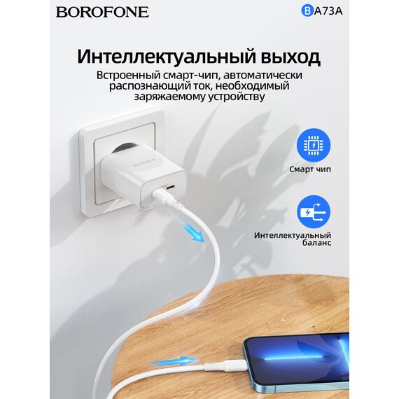 СЗУ Borofone BA73A Young PD35W dual port charger set (Type-C to Type-C) (EU), white